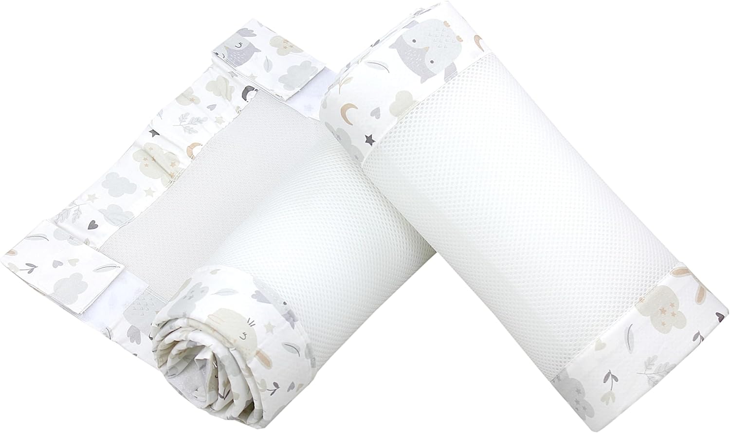 TupTam Gitterstäbe Schutz Netz Babybett Nestchen 3D Mesh 2er Pack, Farbe: Hase/Eule, Grösse: ca. 128