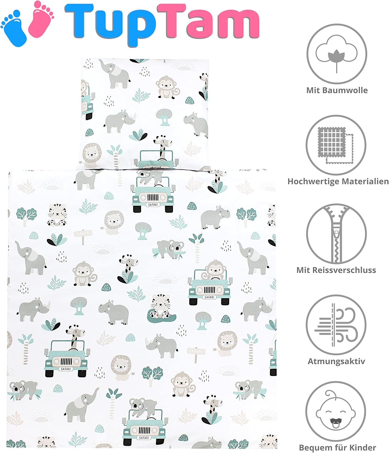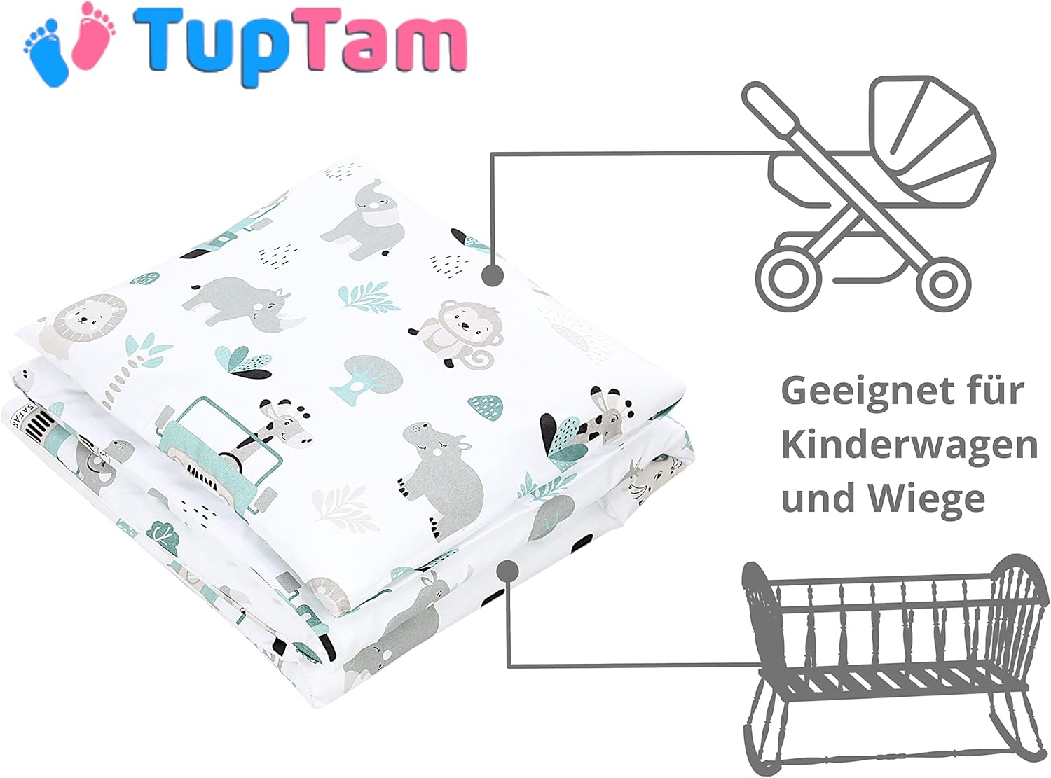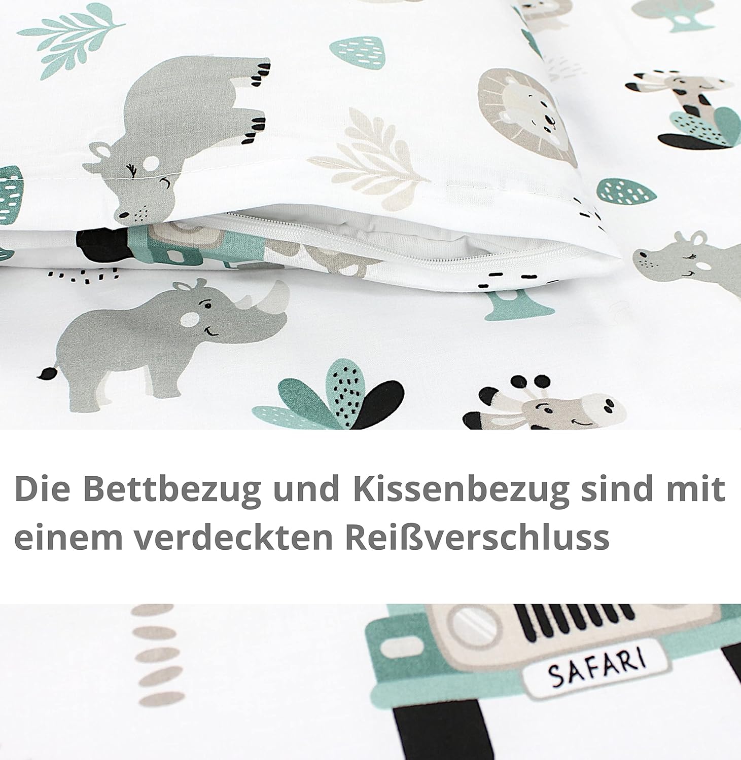 - 4-tlg. Set Baby Bettwäsche: Bettdecke und Deckenbezug 80x80 cm, Kopfkissen und Kissenbezug 35 x 40 cm