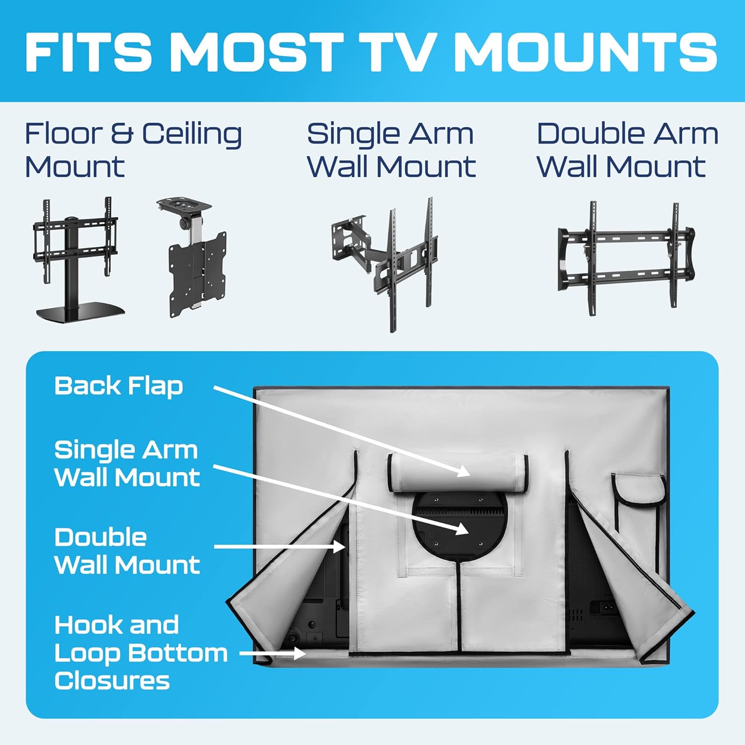 - PASST PERFEKT AUF DIE MEISTEN HALTERUNGEN! Ihr TV-Displayschutz muss nicht nur zum Set selbst passen, sondern auch zu der Halterung, auf der das Set installiert ist. Wir haben das Design unserer universellen wetterfesten TV-Abdeckung für den