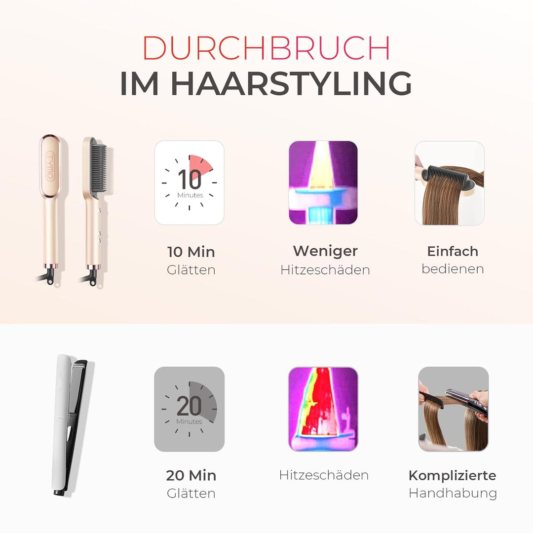 - [Effizientes und einfaches Haarglätten]: Der TYMO Haarglätter Kamm kombiniert glätteisen und Kamm, um Haare schnell zu glätten und gleichzeitig zu entwirren, wodurch glattes Haar einfacher wird. Verschwenden Sie niemals eine Minute Ihres Morgens!