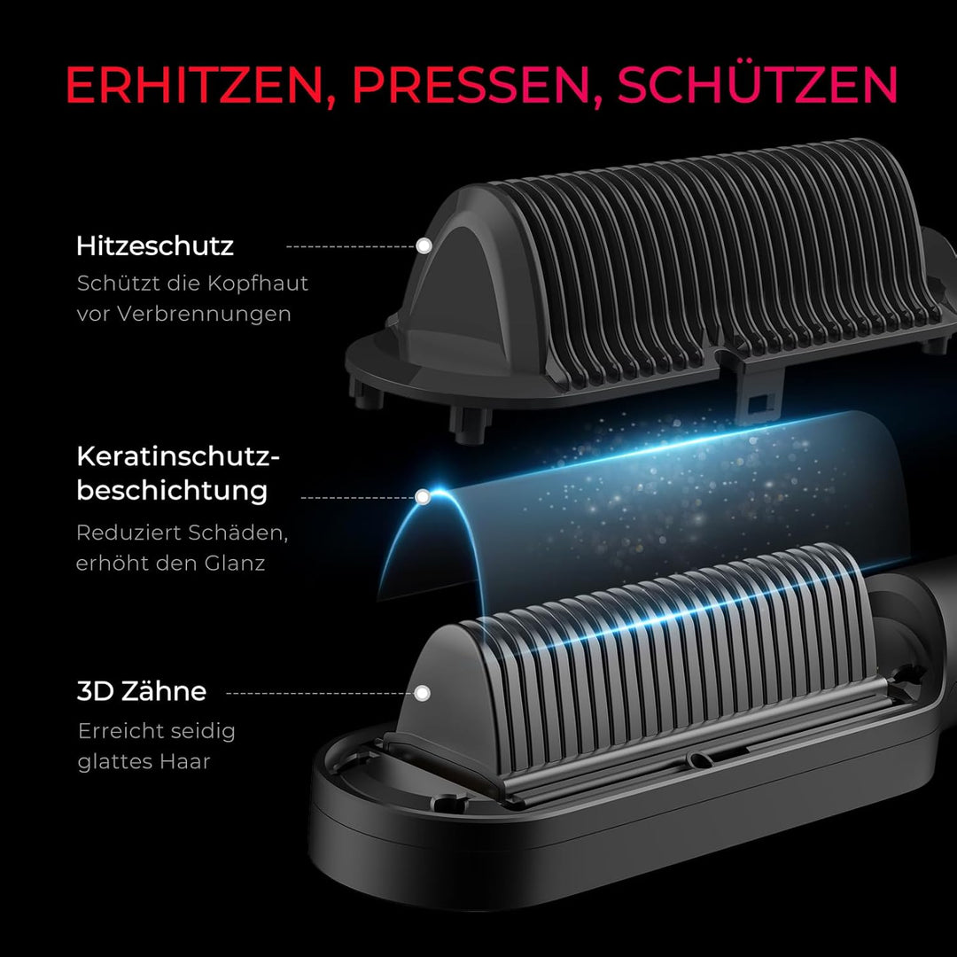 - [Verbessertes Tastendesign]: Um ein versehentliches Ausschalten beim Stylen zu vermeiden, wurde unser Heissbürstenglätter mit einem neuen versenkten Tastendesign ausgestattet, mit dem Sie Ihr Haar aus verschiedenen Winkeln glätten können.