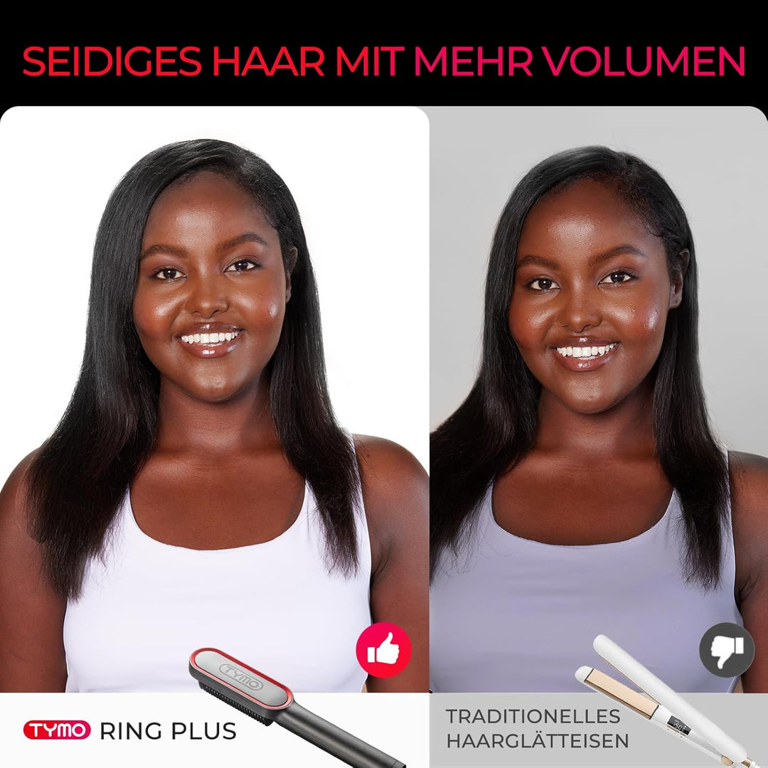 - [Keratin-Keramikbeschichtung]: Mit einem patentierten Zahndesign kann die TYMO RING PLUS Haarglätterbürste problemlos von der Wurzel bis zur Spitze durch Ihr Haar gleiten und Ihr Haar in einem Zug glätten. Ausserdem kann unsere neue