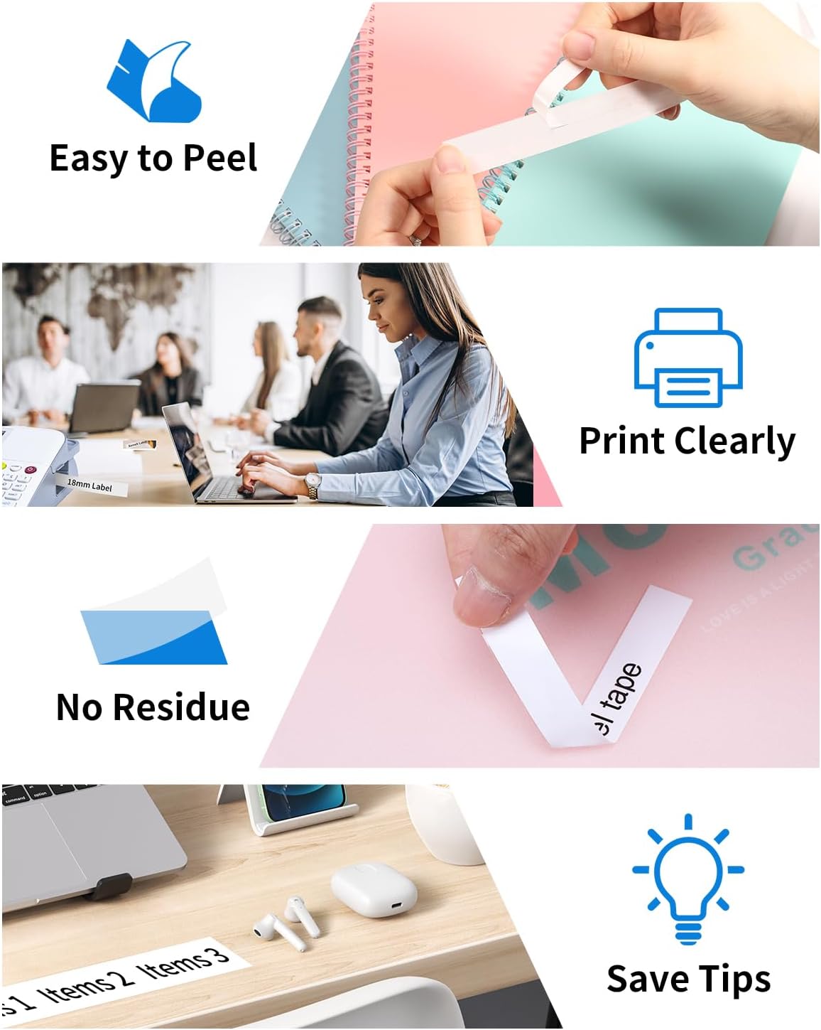- Kompatibel für Ptouch tze 18 mm Band lässt sich leicht vom Trägerpapier abziehen. Laminiertes Etikettenband kann auf jeder glatten Oberfläche verwendet werden, auch im Innen- und Aussenbereich