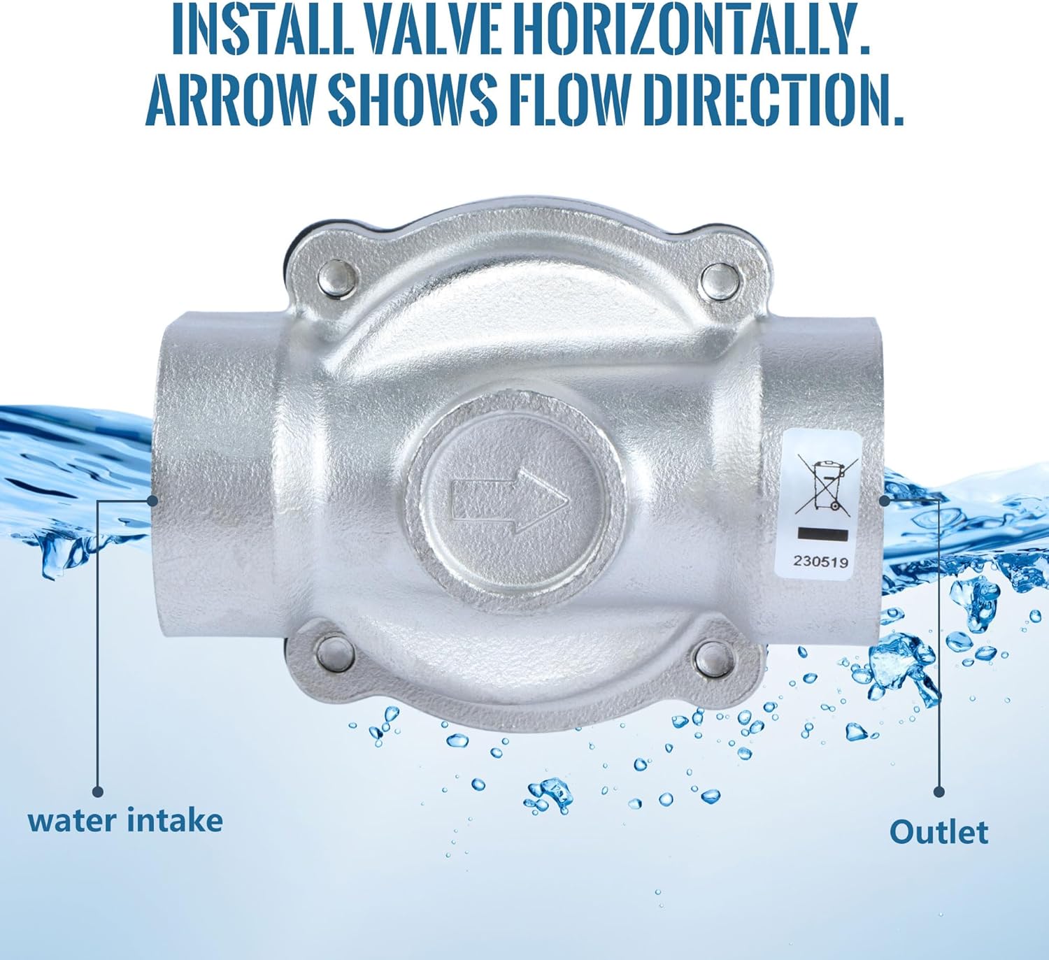 - ✅ HINWEISE: Das Ventil muss waagerecht eingebaut werden, der Pfeil zeigt die Richtung des Fliessrichtung an. Um eine lange Lebensdauer zu gewährleisten sollte das Magnetventil nicht länger als 8 Stunden betrieben werden.