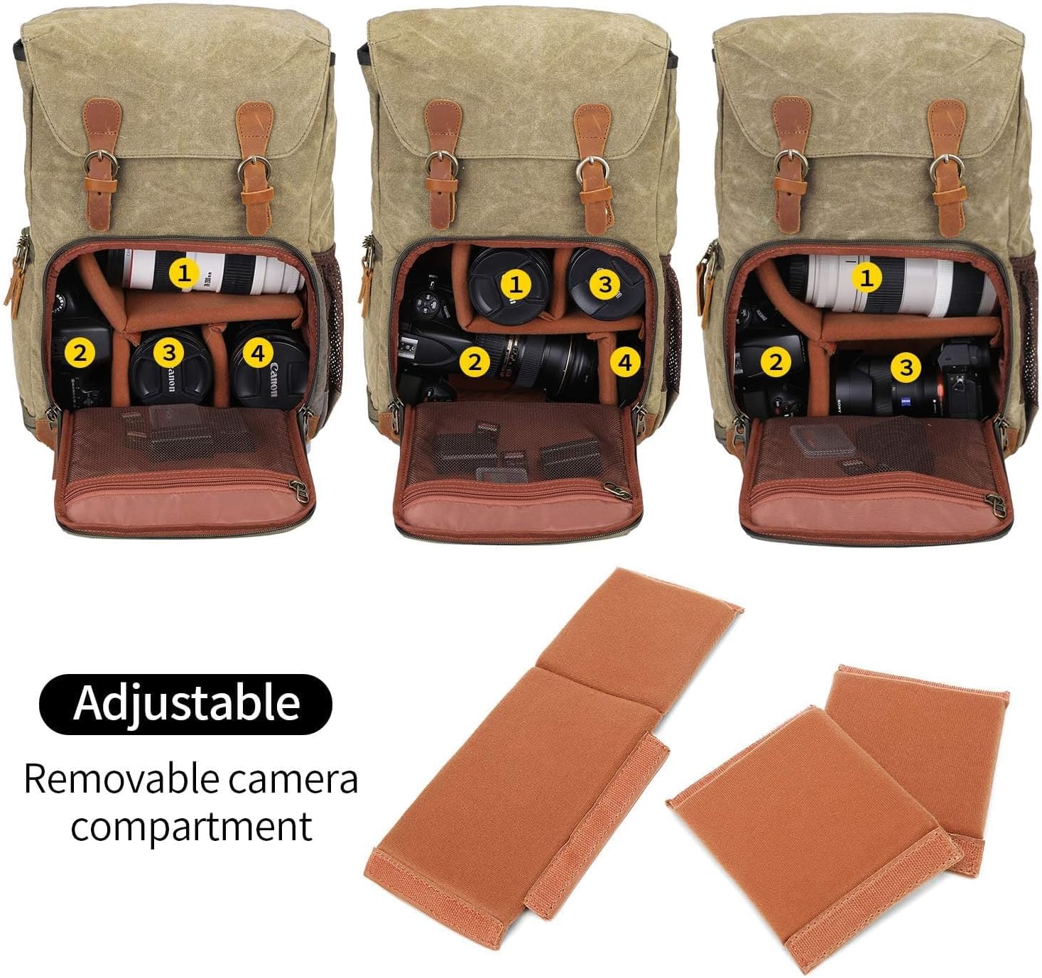 - 【Wasserdicht & Hochwertig】: Hergestellt aus wasserdichtem Kanevas und echtem Leder bietet dieser Kamerarucksack Schutz vor Nieselregen. Ergonomische, atmungsaktive gepolsterte Rückwand und Schulterriemen sorgen auch nach langem Tragen für Komfort