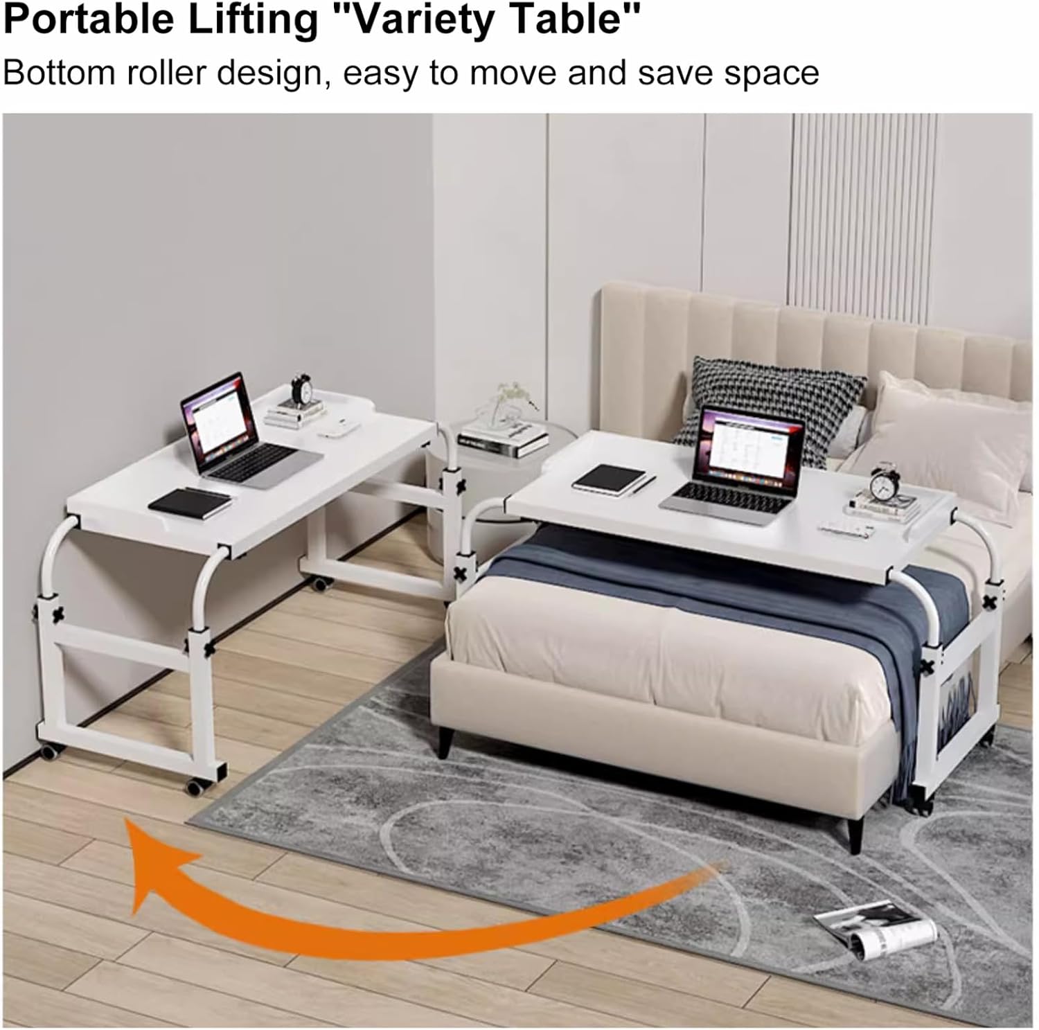 - ☘【SCHWERE BELASTUNG】- Dieser Rolltisch über dem Bett ist aus gutem Material gefertigt, was ihm eine Belastung von bis zu 100 kg verleiht. Lampe, Computer, Pad, Bücher, Dekorationen können darauf mit ausreichend Platz platziert werden.