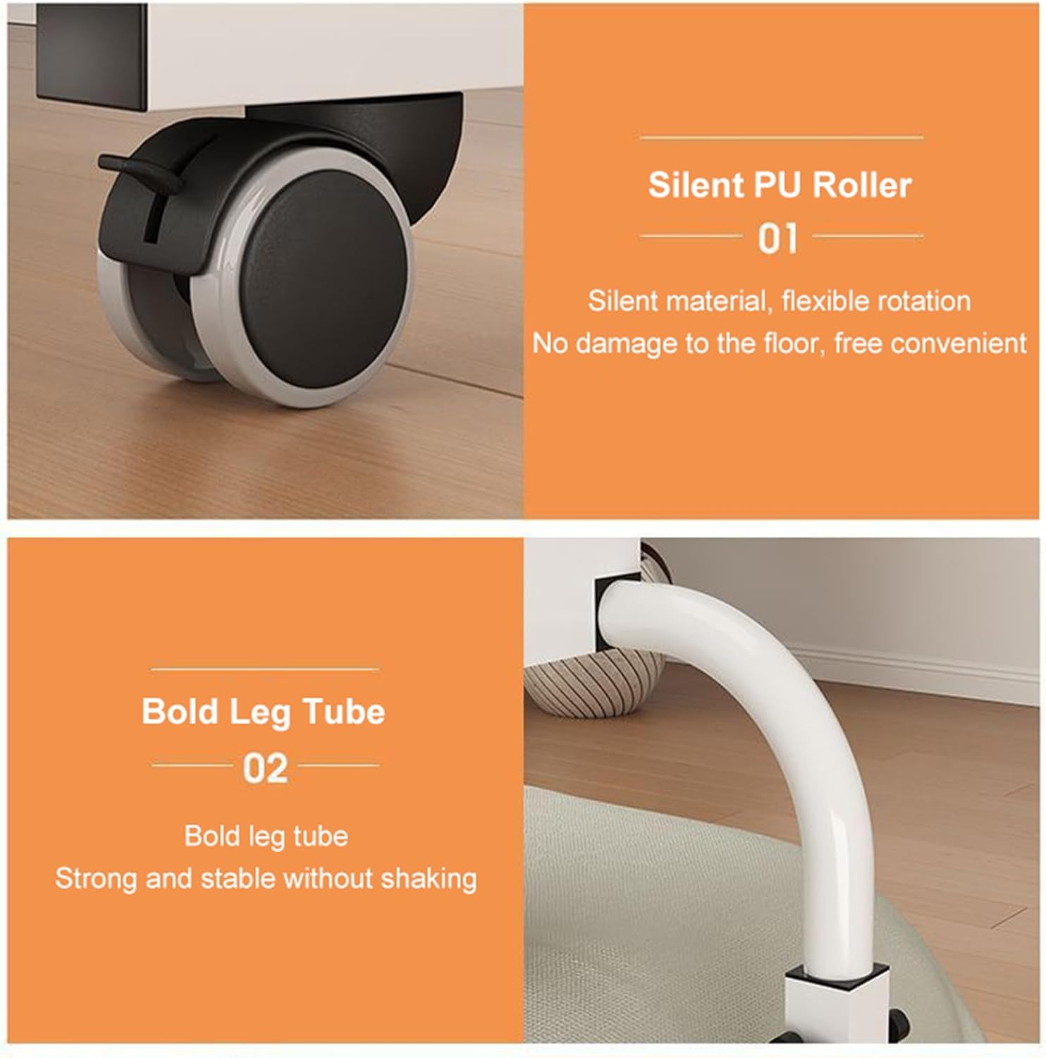 - ☘【ROLLEN UND REINIGEN】- Der verstellbare Überbetttisch verfügt über vier Räder, mit denen der Tisch überall hin bewegt werden kann, und mit Schlössern kann der Tisch sofort anhalten. Abwischbare Oberfläche, schnelle Entfernung von Schmutz.