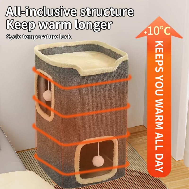 - 🐱【Mehrstöckiges Raumdesign】Der erste und der erste Stock haben jeweils ein Loch für Katzen zum Spielen. Die dritte Etage ist ein weiches Katzennest. Das Katzenbett bietet drei verschiedene Arten von spielerischem Spass und eignet sich perfekt