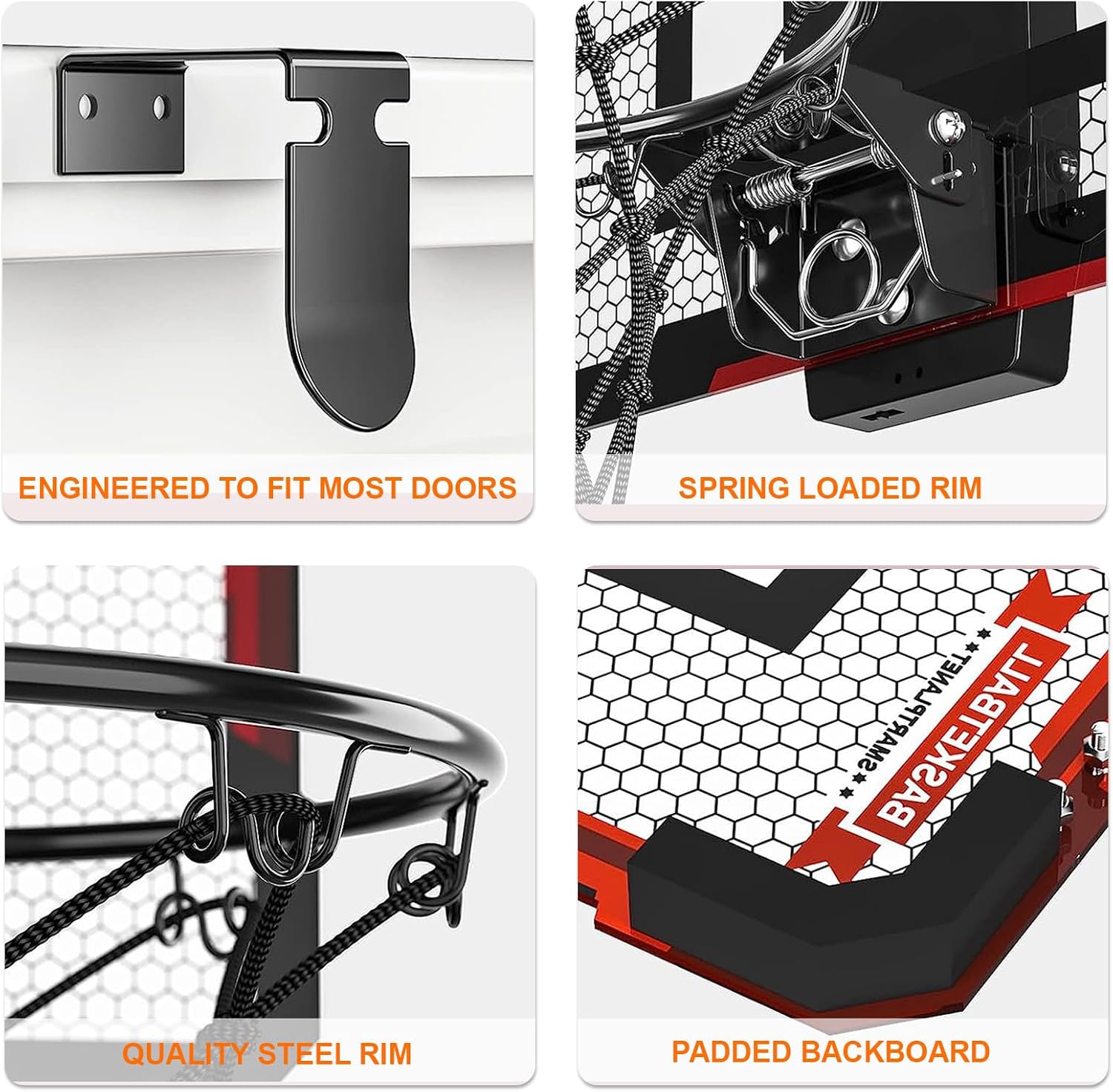 - 🏀【Bequem und sicher】In diesem Basketballkorb-Set gibt es 4 dicke Schwammschutzstreifen am Rückprall, die helfen, Kratzer an Türen und Wänden zu verhindern und Geräusche effektiv zu reduzieren,ist mit 2 Haken ausgestattet,die direkt an der Tür