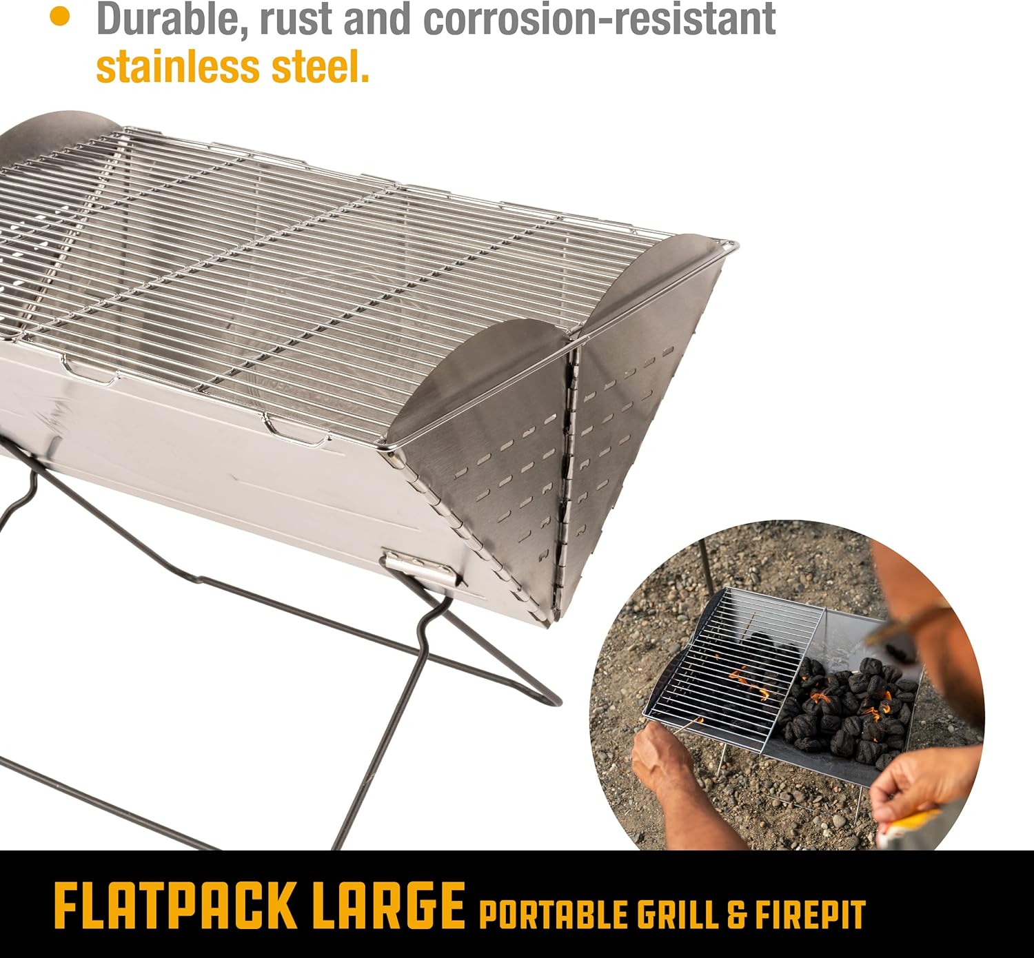 • Tragbarer Grill und Feuerstelle: Der tragbare Flatpack-Grill und die Feuerstelle lässt sich zu einem kompakten 5,1 cm dicken Paket zusammenfalten, um den Transport zum Strand, auf Campingplätzen, zum Grillen und mehr zu erleichtern
