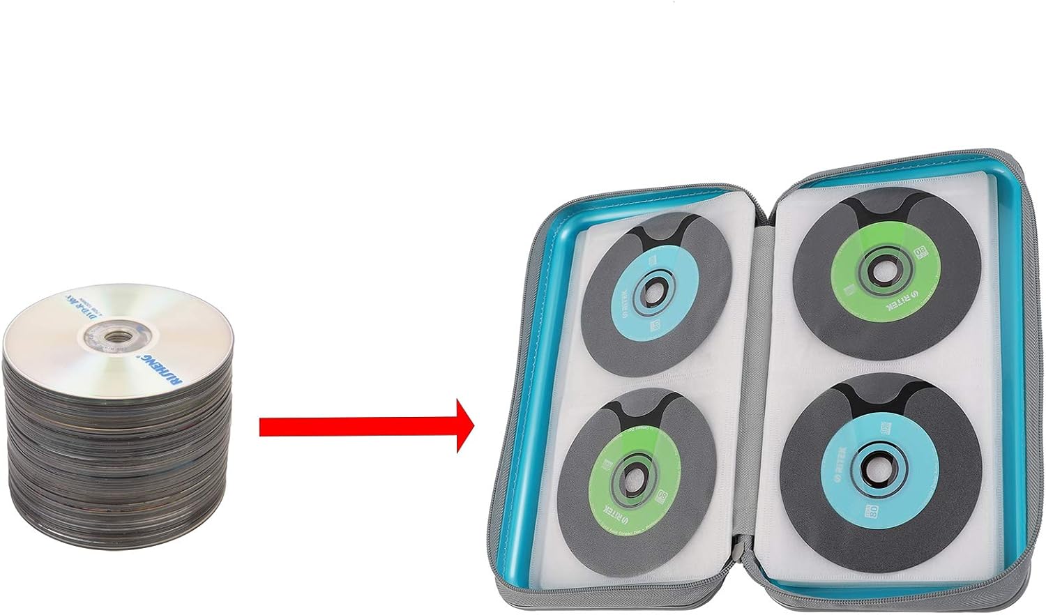- Halten Sie sich von Kratzern und Flecken fern: Das robuste und langlebige Kunststoffgehäuse schützt Ihre klassischen CDs. Die DVD-Discs werden nicht zerkratzt oder verschmutzt. Der Reissverschluss lässt sich leicht schliessen, nachdem 96 Scheiben