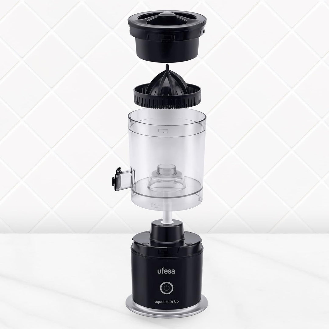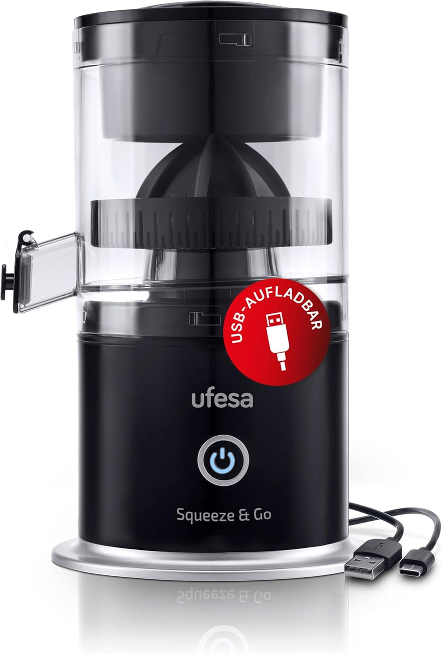 - Vielseitig und Tragbar, Kabelloser Tragbarer Entsafter. Der Ufesa Squeeze & Go Entsafter ist einer der vielseitigsten und leistungsstärksten Entsafter auf dem Markt. Mit seiner kompakten Grösse und der Möglichkeit, ihn überall hin mitzunehmen, ist er