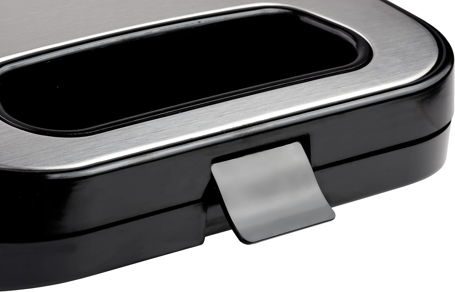 - SICHERHEIT UND AUSFÜHRUNG. Sandwichmaker mit Kunststoff- und Edelstahloberfläche, mit Sicherheitsverriegelung, rutschfesten Füssen, kühlem Griff und Kabelaufwicklung. Ermöglicht die vertikale Lagerung.