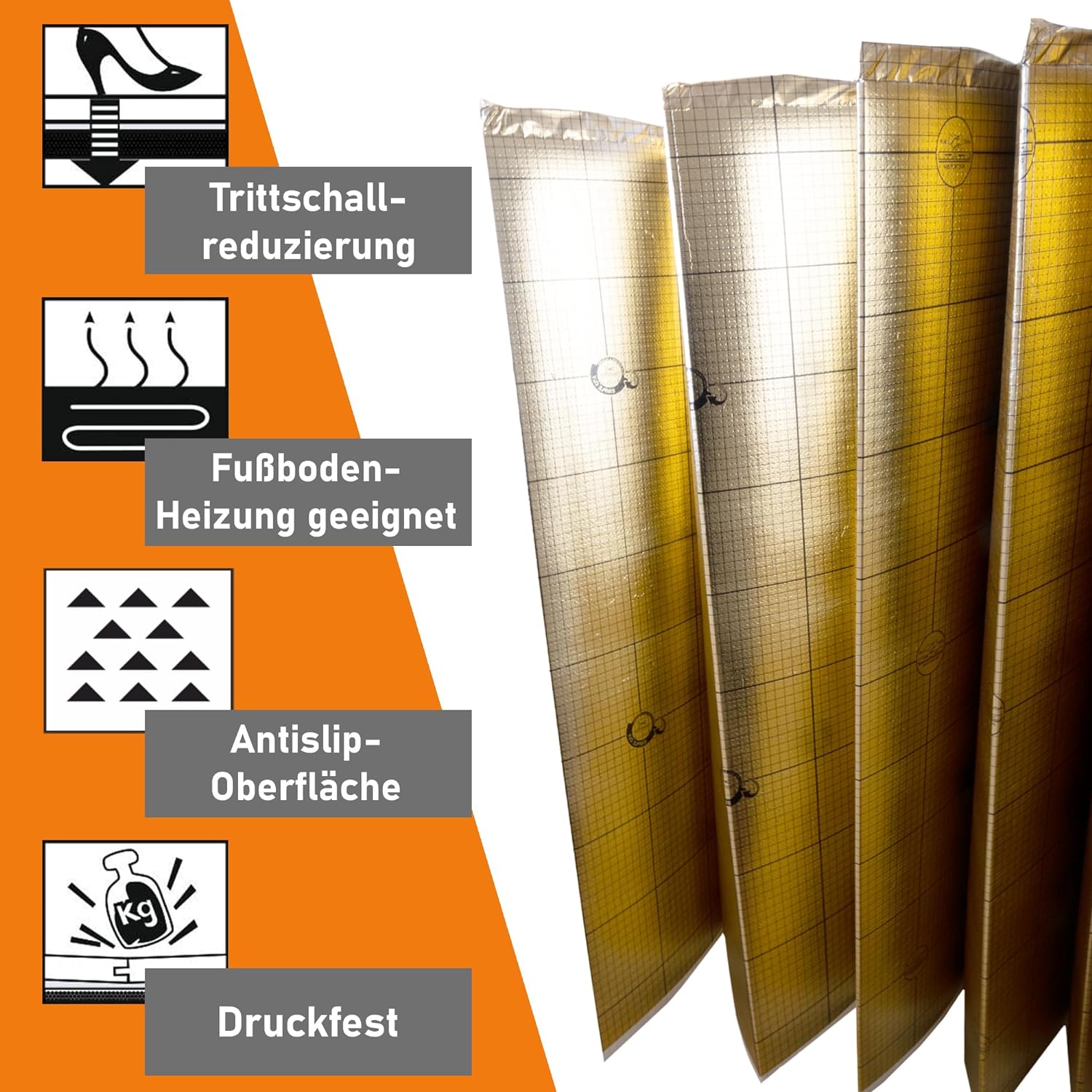 - ANTI SLIP TECHNOLOGIE: Sicherheit steht bei uns an oberster Stelle! Deshalb hat die Trittschalldämmung eine Druckfestigkeit von 200 kpA und den Brandschutz Efl. Das Produkt hat eine Anti-Slip Technologie!