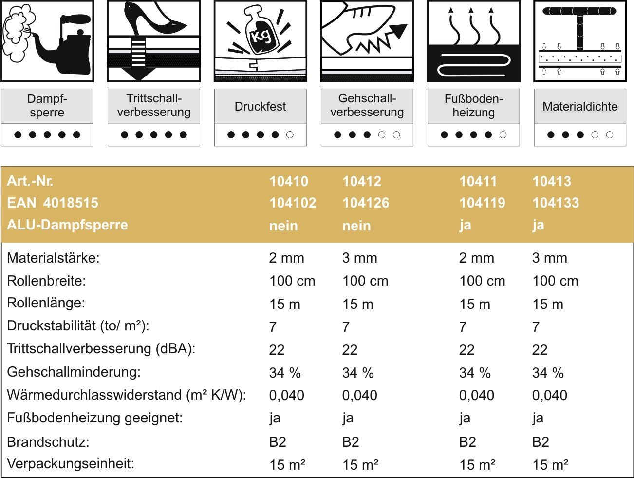 - Trittschallverbesserung ca. 22 dB | Gehschallverbesserung ca. 34 %