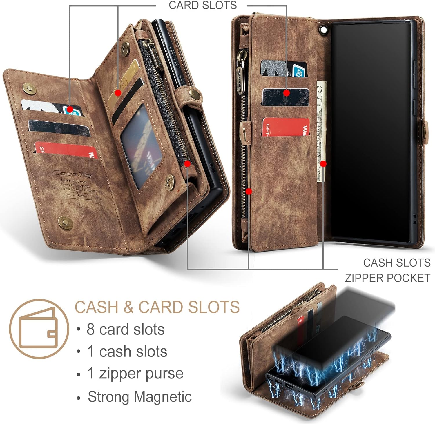 - 【 NEUE UPGRADE-BRIEFTASCHE MULTIFUNKTIONALE HANDYHOLSTER 】 - Multi-Kreditkartenfach, 8 Kartenfächer + Fotorahmen + 1 Geldfach + 1 Reissverschluss-Geldbörse + 2-in-1-Rückentasche. Längerer Reissverschluss, optimiertes dreieckiges Design, mehr