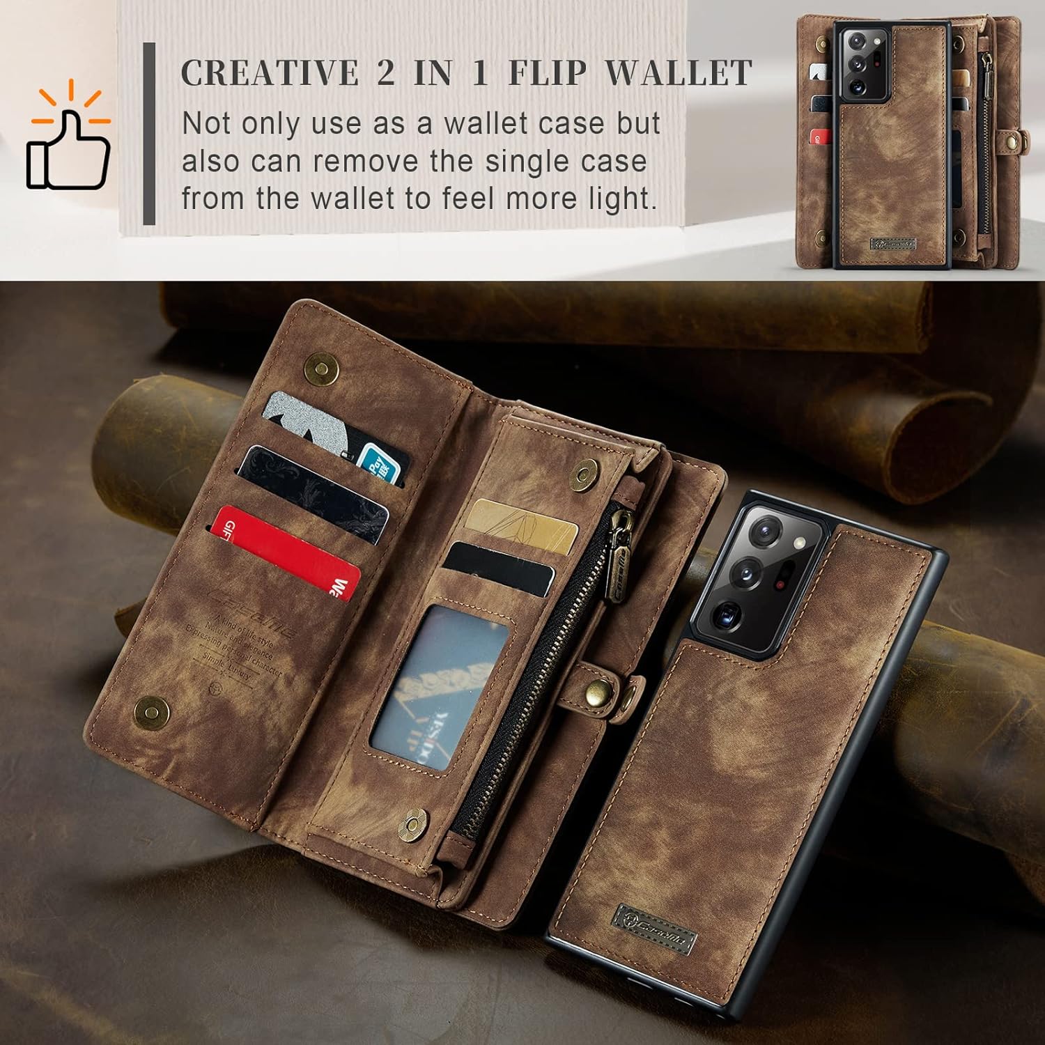 - 【 ABNEHMBARES DESIGN 】- Das neue Design ermöglicht es, die Brieftasche von der magnetischen Handyhülle zu lösen, um Ihr Handy bequemer individuell zu nutzen.