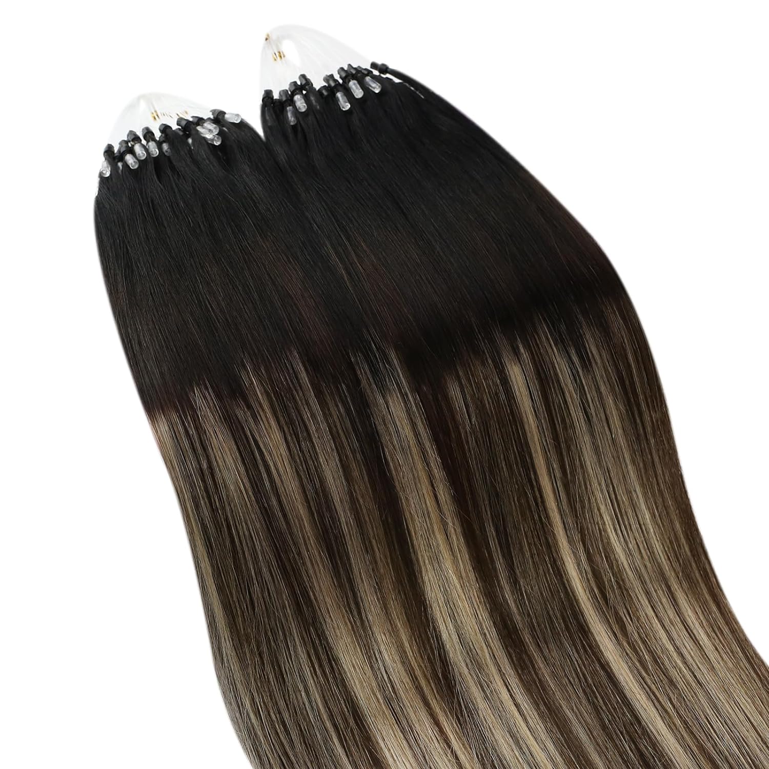 - 【Haarfarbe】#1B/4/27 Balayage von schwarz bis braun mit blondem Mikroring, Remy-Echthaar-Extensions. Leichte Farbunterschiede können aufgrund unterschiedlicher Monitore von Computern, Handys oder Lichtern auftreten. Wir bieten auch massgeschneiderten