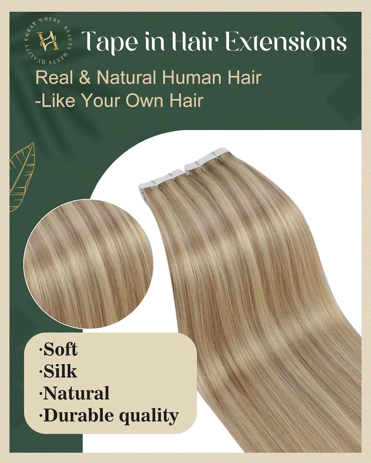 - Leicht und Komfortabel: Das ultradünne tape in Ugeat Extensions Echthaar ist so sanft wie Federn, selbst wenn es für eine lange Zeit getragen wird, fühlt es sich nicht schwer an und reduziert den Kopfhautdruck; Die weiche Textur sorgt dafür, dass du