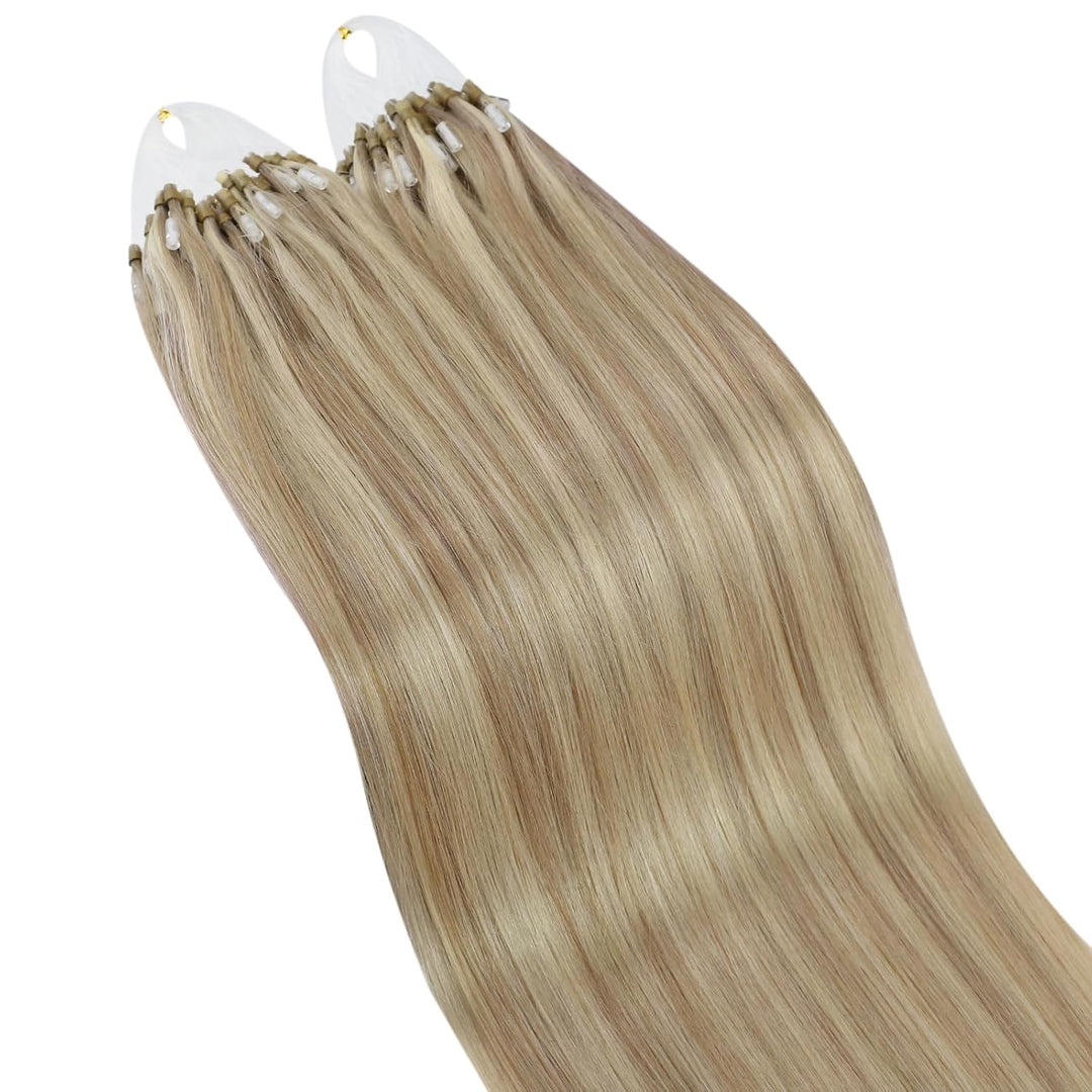 - 【Haarfarbe】#P16/22 Highlights Goldblond mit blondem Mikroring, Remy-Echthaar-Extensions. Leichte Farbunterschiede können aufgrund unterschiedlicher Monitore von Computern, Handys oder Lichtern auftreten. Wir bieten auch massgeschneiderten Service