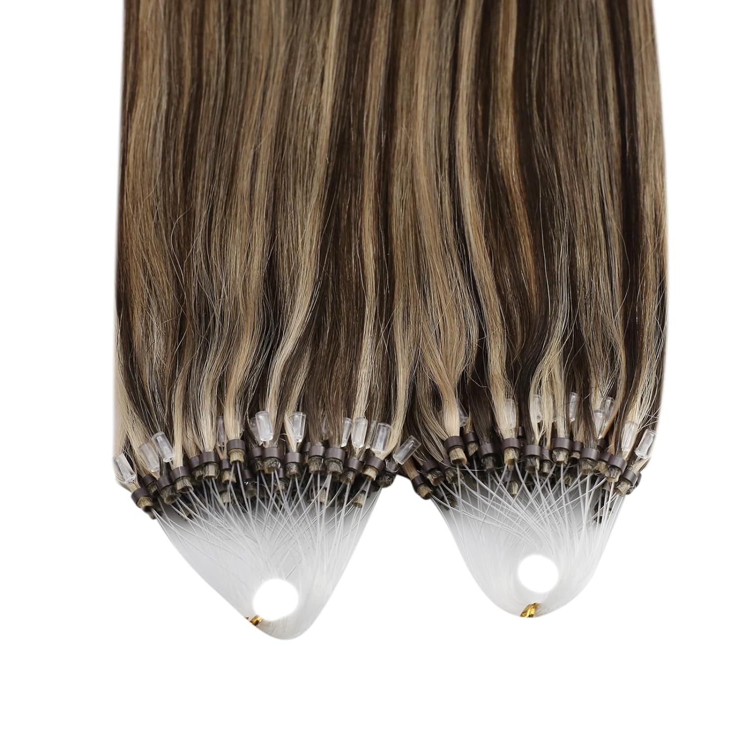 Ugeat Micro Bonding Extensions Echthaar P4/27 Dunkelbraun zu Karamellblond Gesträhnt Extensions Micr