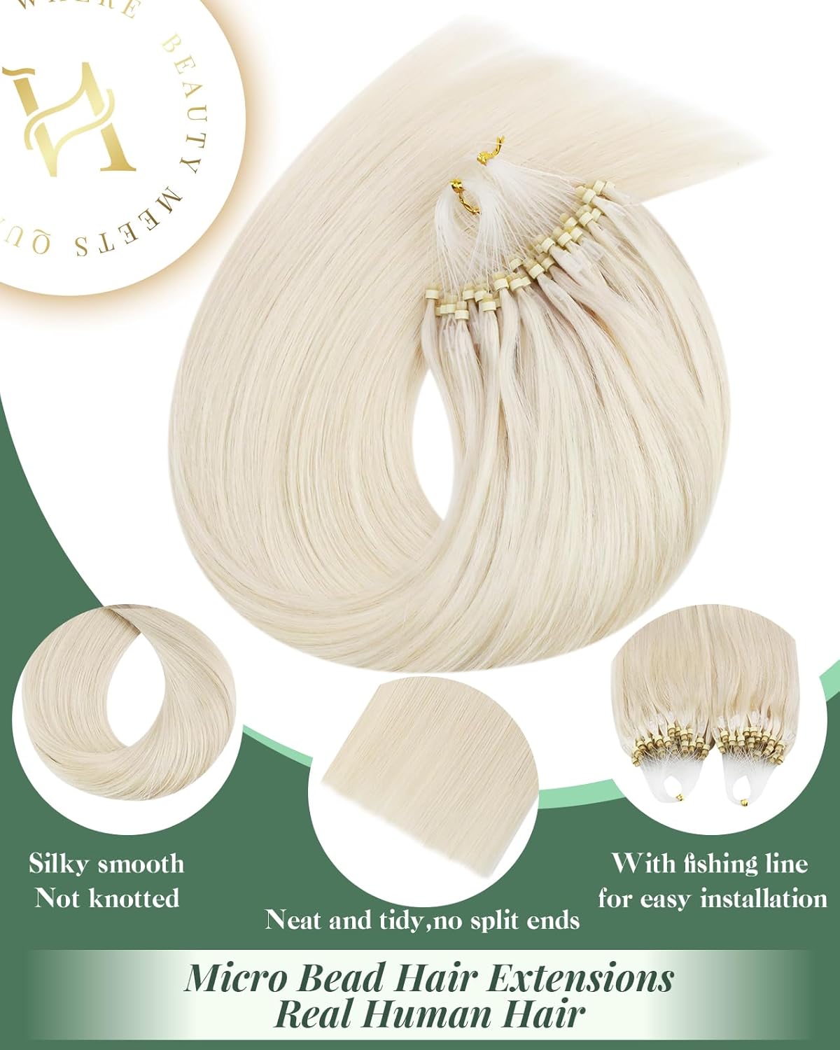 - 【Haarfarbe】#60A Weissblond Micro Ring Remy Echthaarverlängerungen. Leichte Farbunterschiede können aufgrund unterschiedlicher Monitore von Computern, Handys oder Lichtern auftreten. Wir bieten auch massgeschneiderten Service für Farbe und Stil.