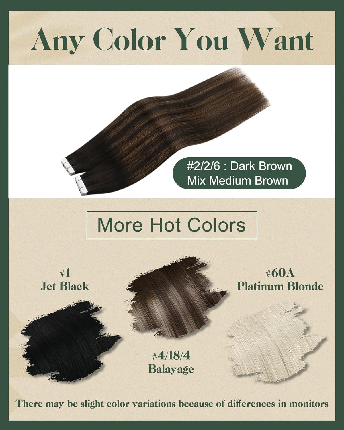 - 【Spezifikation】Schwarzbrauner Schatten - Tape in Haarverlängerungen sind 12-24 Zoll, 20 Stück pro Packung. 12 Zoll wiegt 30g, 14-24 Zoll wiegt 50g. Je nach Länge wiegt jedes Stück zwischen 1,5 und 2,5 g, so dass es sich nicht schwer anfühlt oder