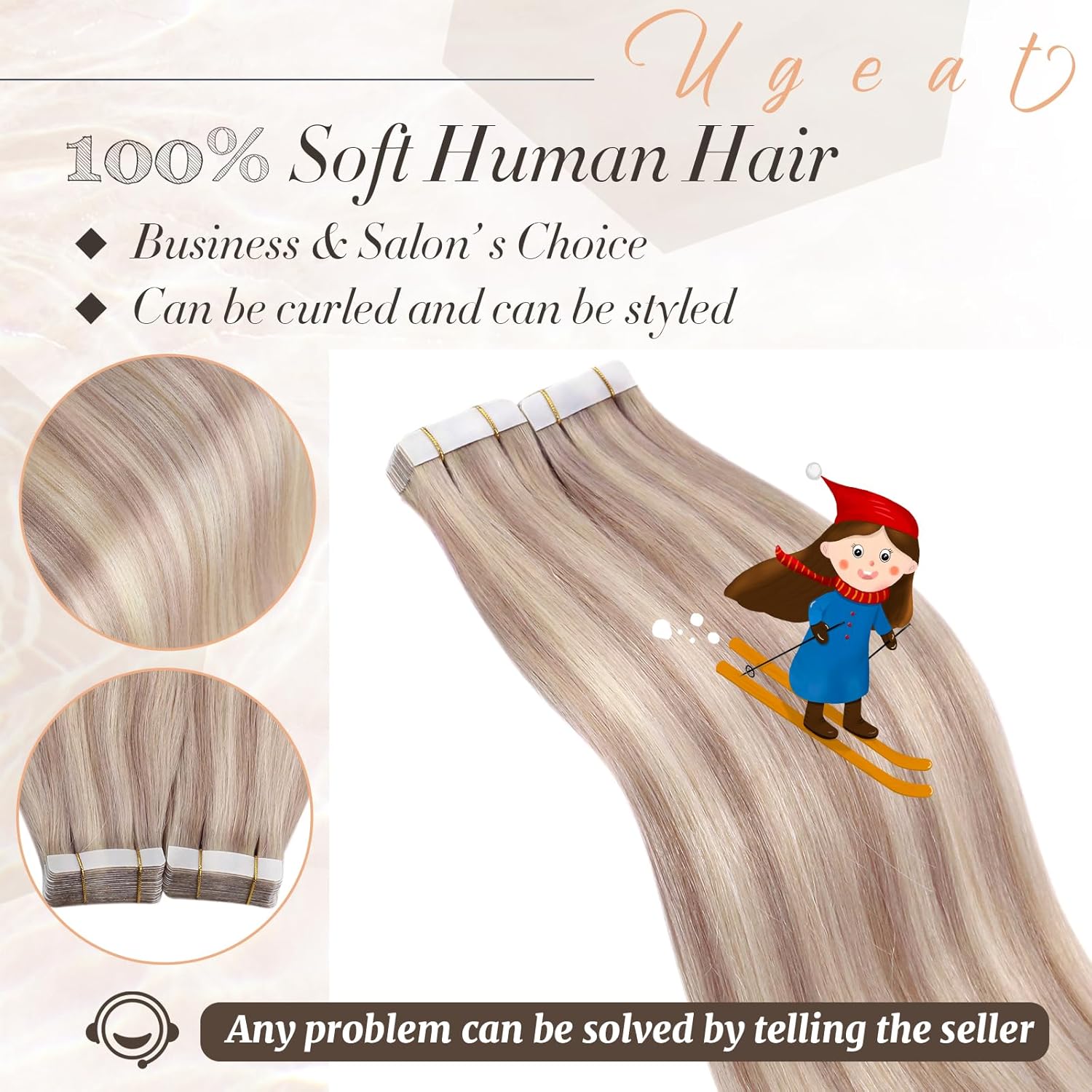 - 【Haarmaterial】Ugeat Haarverlängerungen bestehen aus 100% echtem Menschenhaar, kein synthetisches Haar oder Tierhaar. So wird es nach der Installation so weich und verwickelungsfrei wie Ihr eigenes Haar sein. Solange Sie es richtig pflegen, kann das