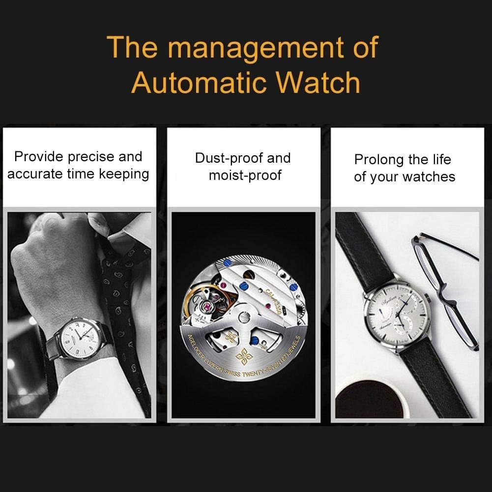 • 【Gutes Design】Die transparente Abdeckung ist staub- und feuchtigkeitsbeständig, wodurch Ihre Uhr geschützt wird und Sie Ihre Uhr jederzeit schätzen oder überprüfen können. Ausgestattet mit einem antimagnetischen Kupferwerk, um sicherzustellen,
