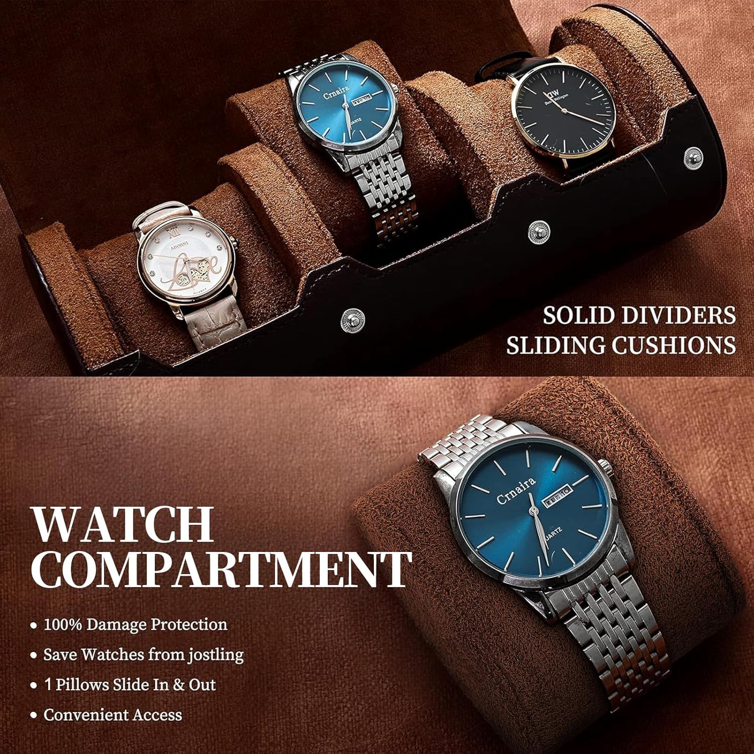 - 【Einschiebbares Uhrenkissen-Design】 Unsere Uhrenrollen verwenden ein innovatives einschiebbares Uhrenkissen-Design, das in das Fach hinein- und herausgleiten kann, ohne den Kern der Gehäusestruktur zu beeinträchtigen, sodass jede Uhr fest an ihrem