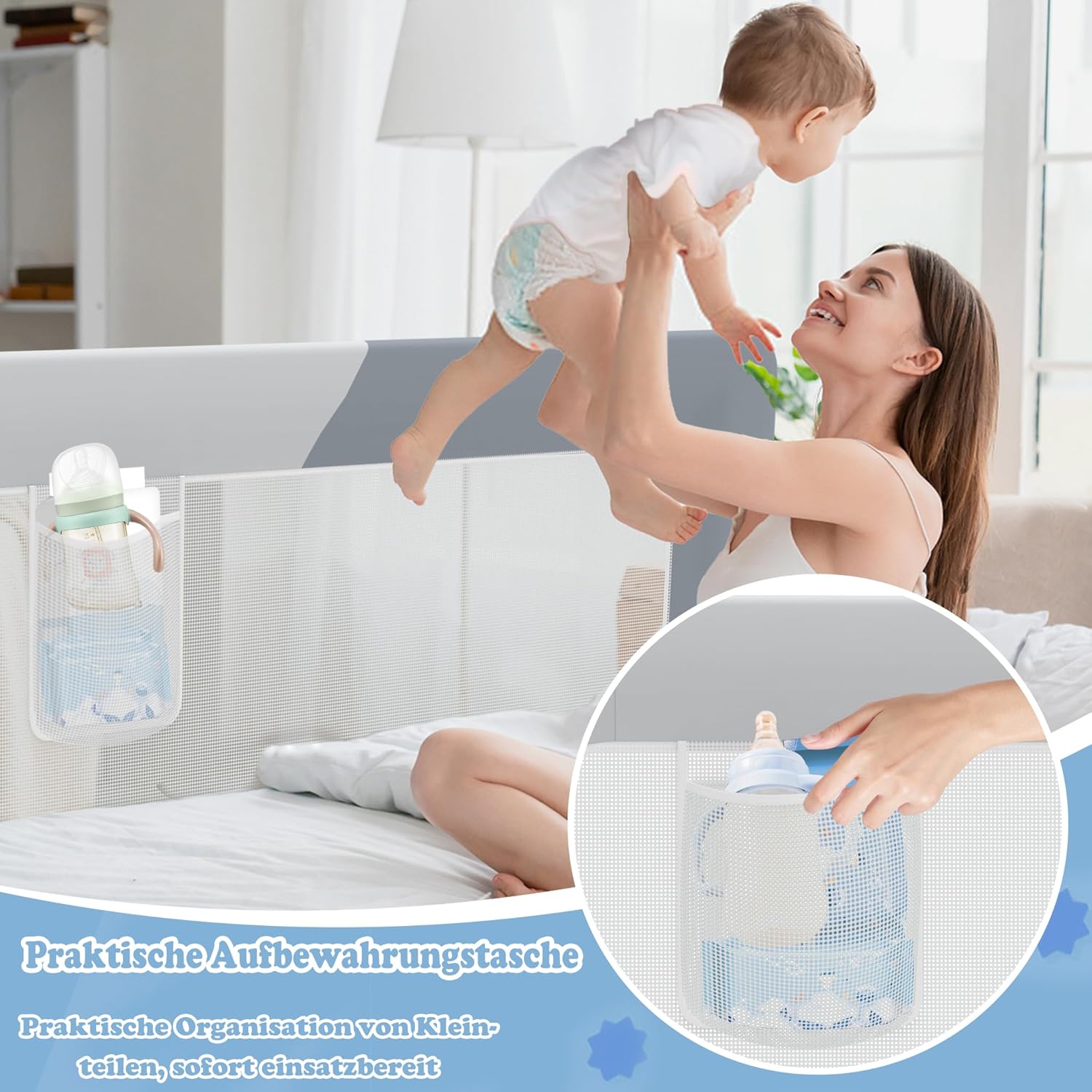 - 🧸【Sichere Schlafumgebung, einfache Handhabung】Mit einem verstärkten Metallrahmen bietet das Gitter Rausfallschutz, damit Ihr Baby nicht aus dem Bett fällt. Wenn es nicht gebraucht wird, kann es platzsparend heruntergeklappt werden und