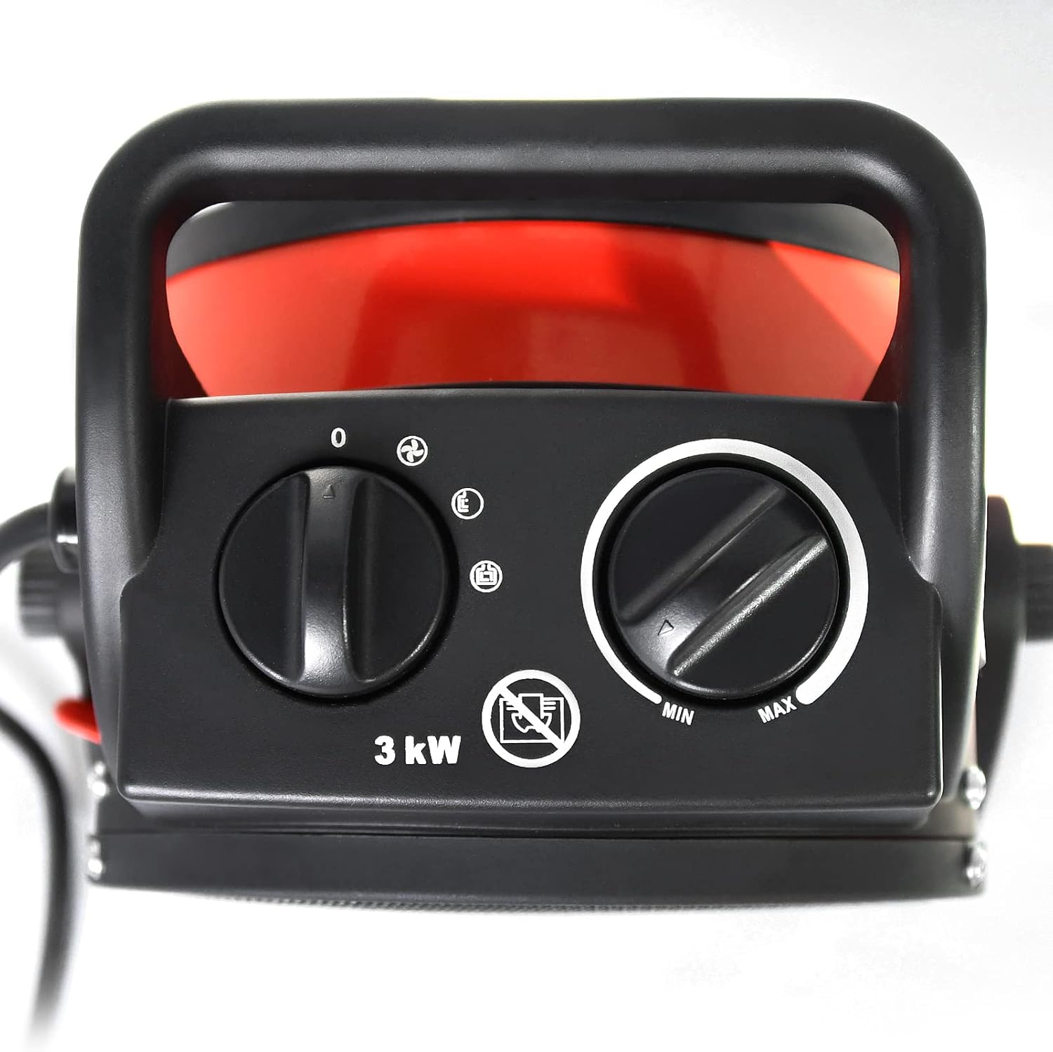 - 🔥【Mit Thermoschalter und Überhitzungsschutzvorrichtung】Linker Knopf 3 Gangschalter, davon 1 und 2 Heizstufen.Der rechte Drehknopf ist ein stufenloser Temperaturregler. DerThermostat ermögicht einen konstanten Warmluftstrom und schaltet das