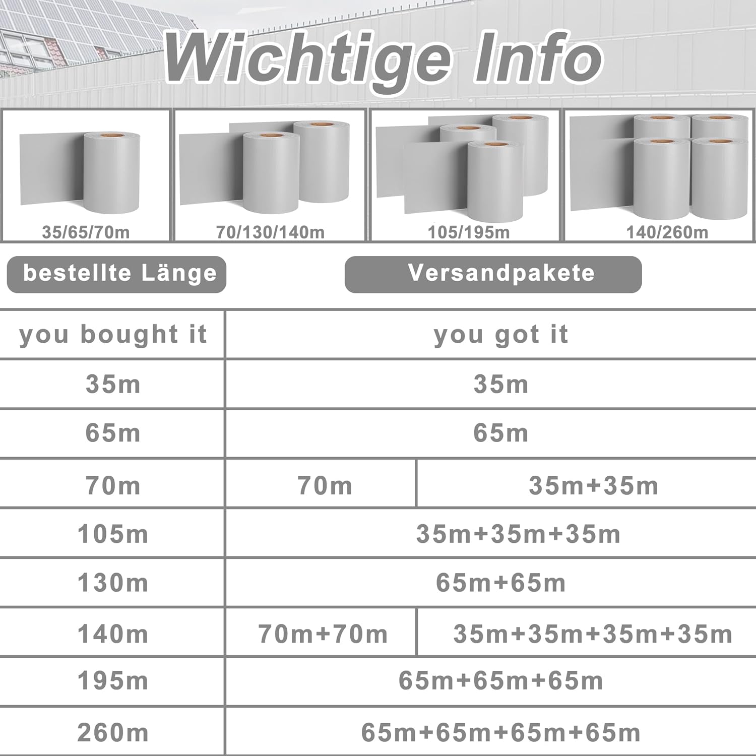 - ☀️ Spezifikation: Material: PVC; Masse: 65 m x 19 cm (L x B); Farbe : Grau; Materialstärke von 450 g/m²; Extrem reissfeste Gewebestruktur.
