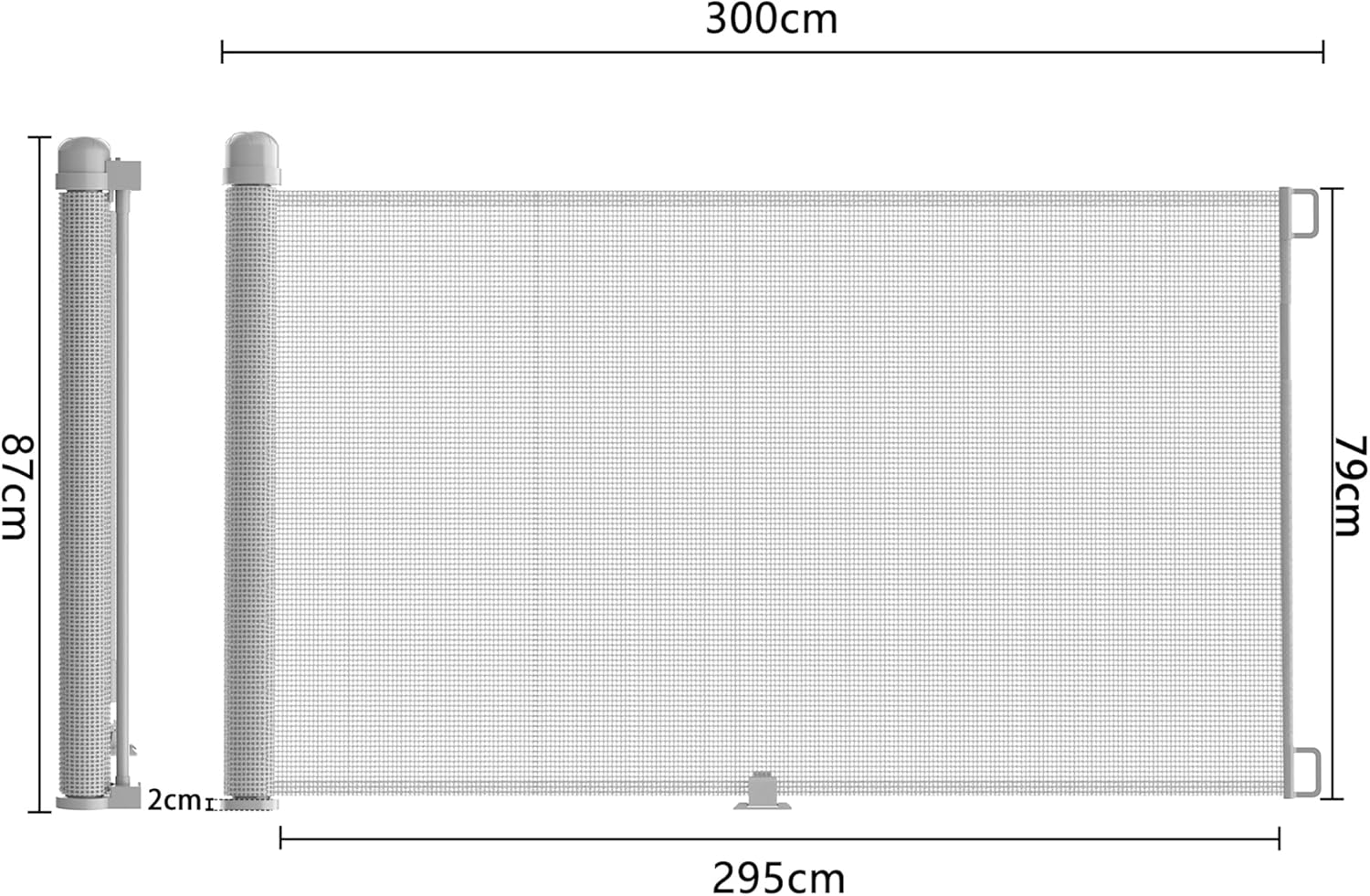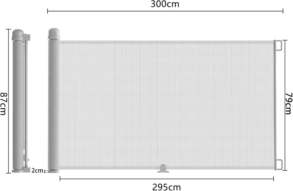 - 💓 Ausziehbares Türschutzgitter: Das Kinder Absperrgitter ist ausziehbar und kann leicht herausgezogen und aufgerollt werden. Anpassbar an unterschiedliche Treppen- oder Türbreiten, bis zu einer maximalen Breite von 300 cm und einer Höhe von 87 cm.