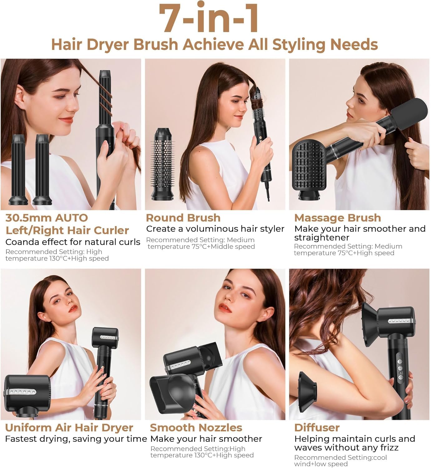 - 【Einzigartiges Design】 - Das 7 in 1 Hair Styler Set kombiniert einen ionen haartrockner mit dem beliebten Luftwickel-Lockenwicklerkopf-Design. Die exquisite Verpackung ermöglicht es Ihnen auch, es als Geschenk für Freunde, Familie oder andere