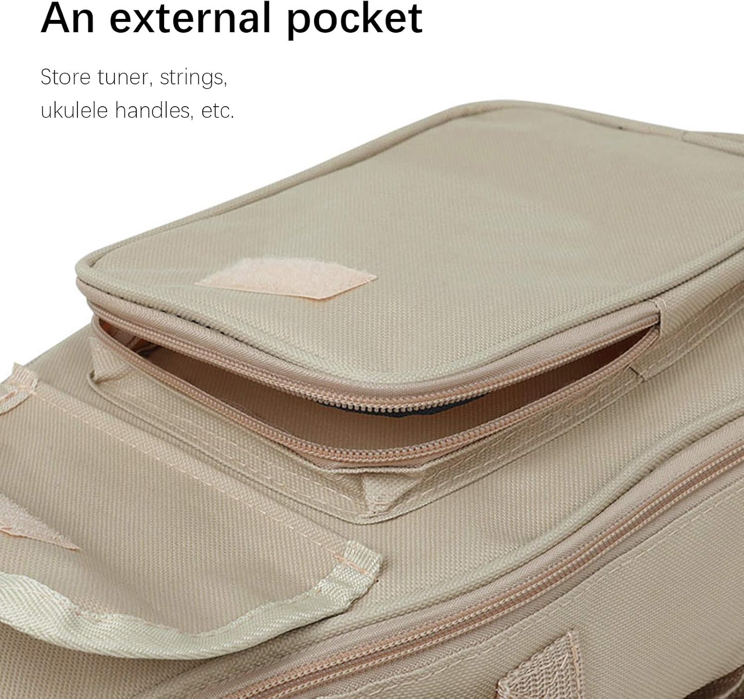 - 【Extra-Tasche】 Eine Aussentasche zur Aufbewahrung von Stimmgeräten, Saiten, Ukulelengriffen und anderem Zubehör.
