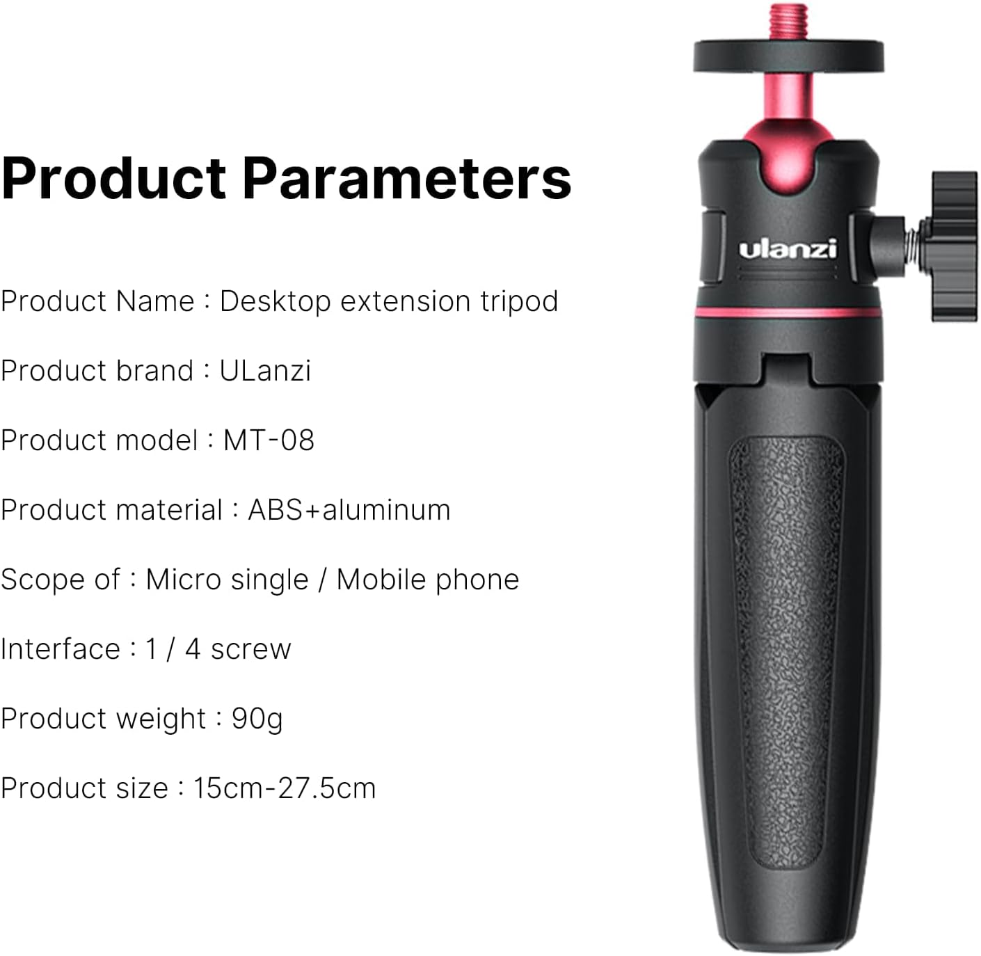 - Mehr Verwendungsmöglichkeiten: MT-08 kann auch als Tischstativ verwendet werden. Wie kleiner Projektorständer, Webcam-Stativ, Fotografie-Lichtständer, Handy-Selfie-Stick (nicht einschliesslich Handy-Clip) usw.