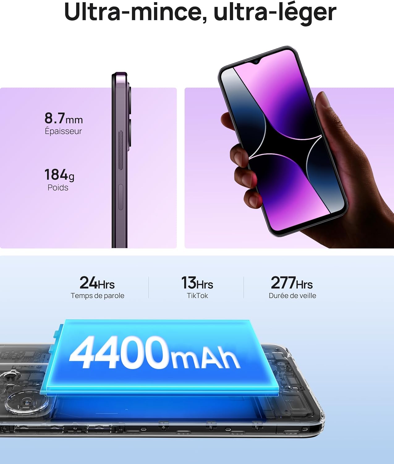 - 【16GB RAM +256GB ROM/256GB SD】Ulefone Note 16 Pro verfügt über bis zu 16GB RAM(8GB RAM + 8GB virtuellen RAM) + 256GB ROM + 256GB SD Erweiterung, das Herunterladen und Teilen zum Kinderspiel zu machen. Mit leistungsstarke Unisoc T606 Octa Core 2,0