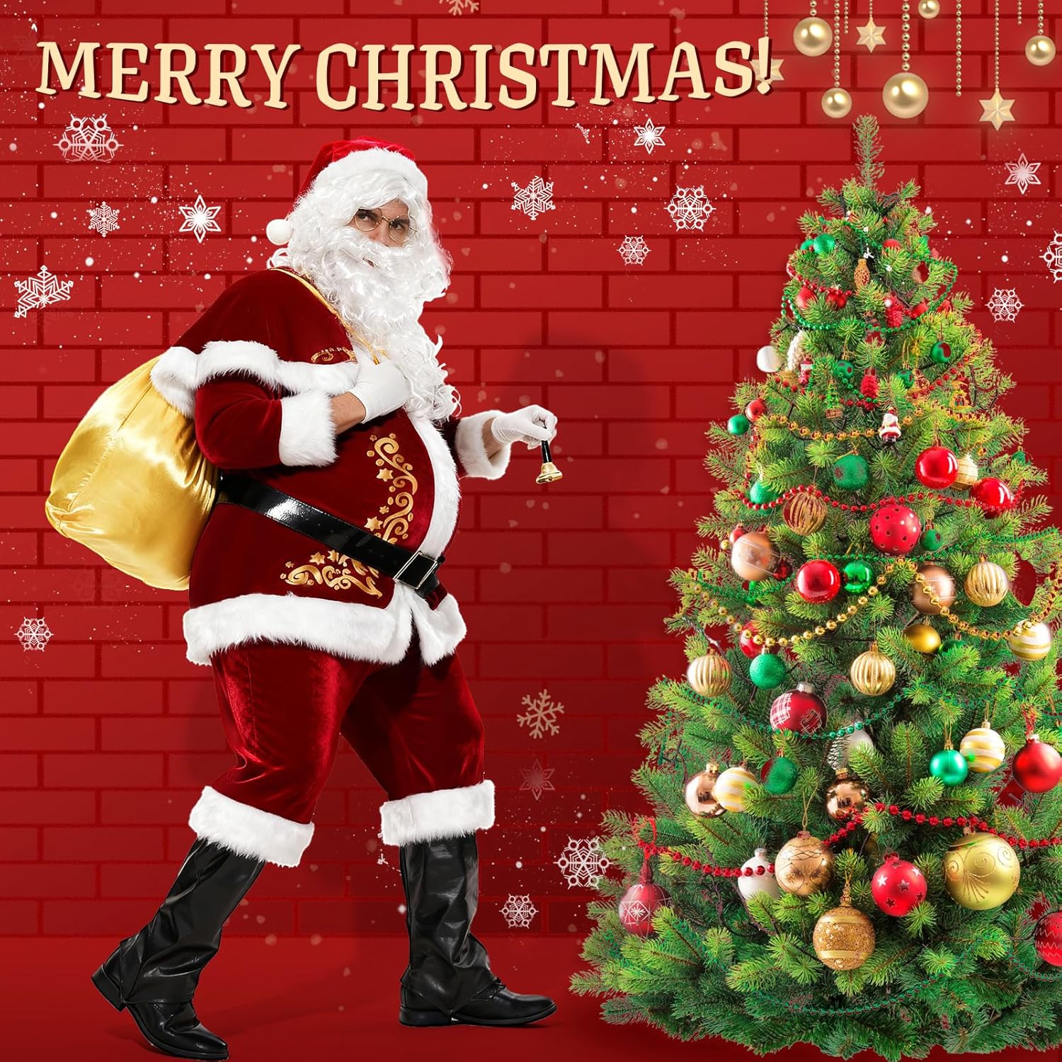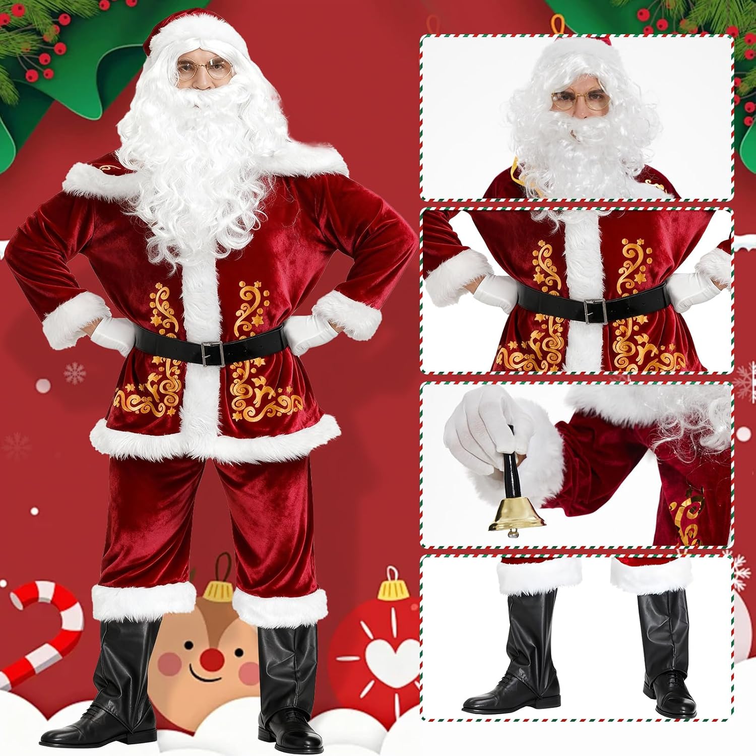 - Komplettes Weihnachts Set: Steigern Sie Ihre Weihnachtsstimmung mit unserem umfassenden Weihnachtsmann Kostüm Herren Set. Von der ikonischen Weihnachtsmütze bis zur bezaubernden goldenen Tasche bietet dieses Weihnachtsmann Kostüm Herren Set alles, was