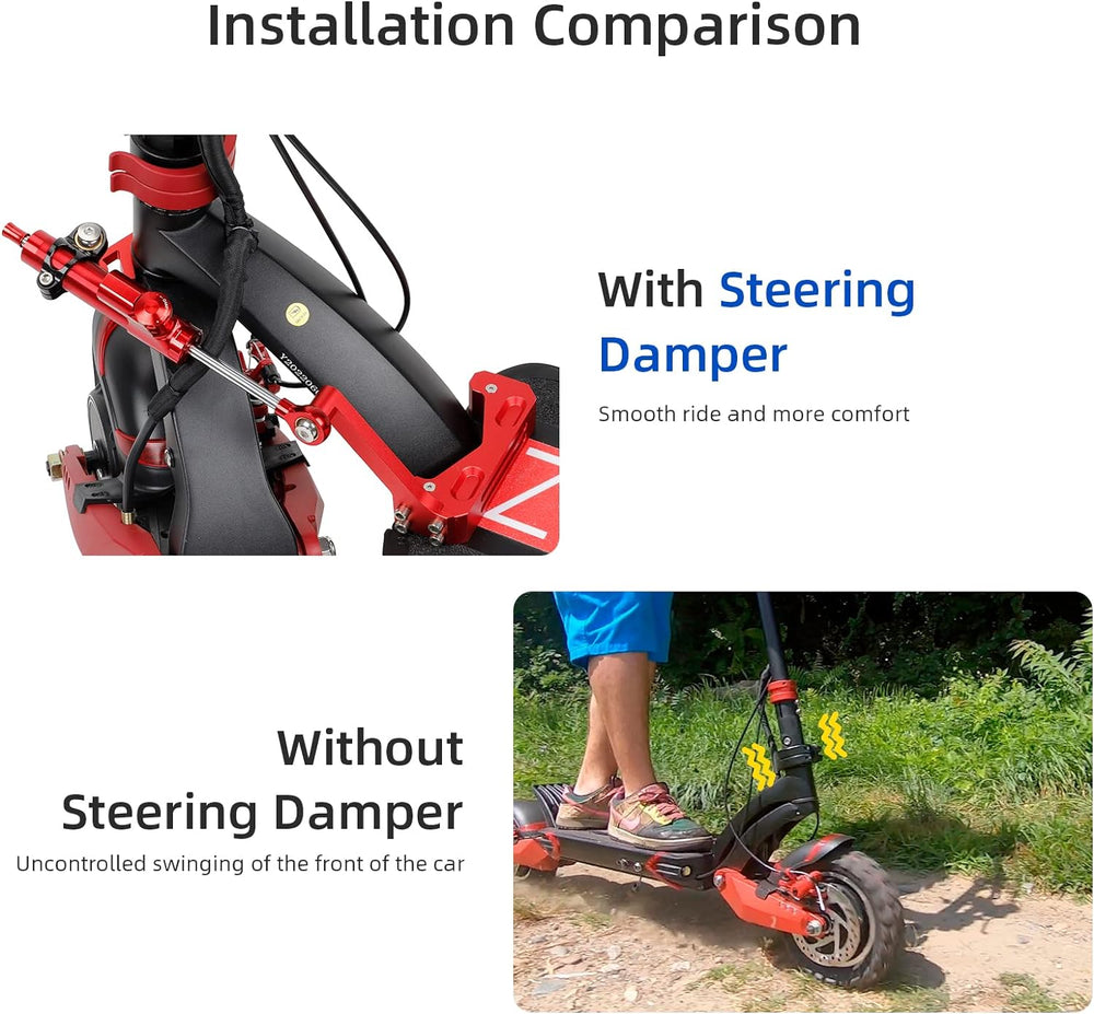 - 【Zusatzfunktionen】: Der Lenkungsstabilisator wurde entwickelt, um das Schwingen des Vorderrads, die holprige Lenkung und die Vibrationen des Vorderrads zu unterdrücken, wodurch die Lebensdauer der Reifen, Rollergelenke und anderer