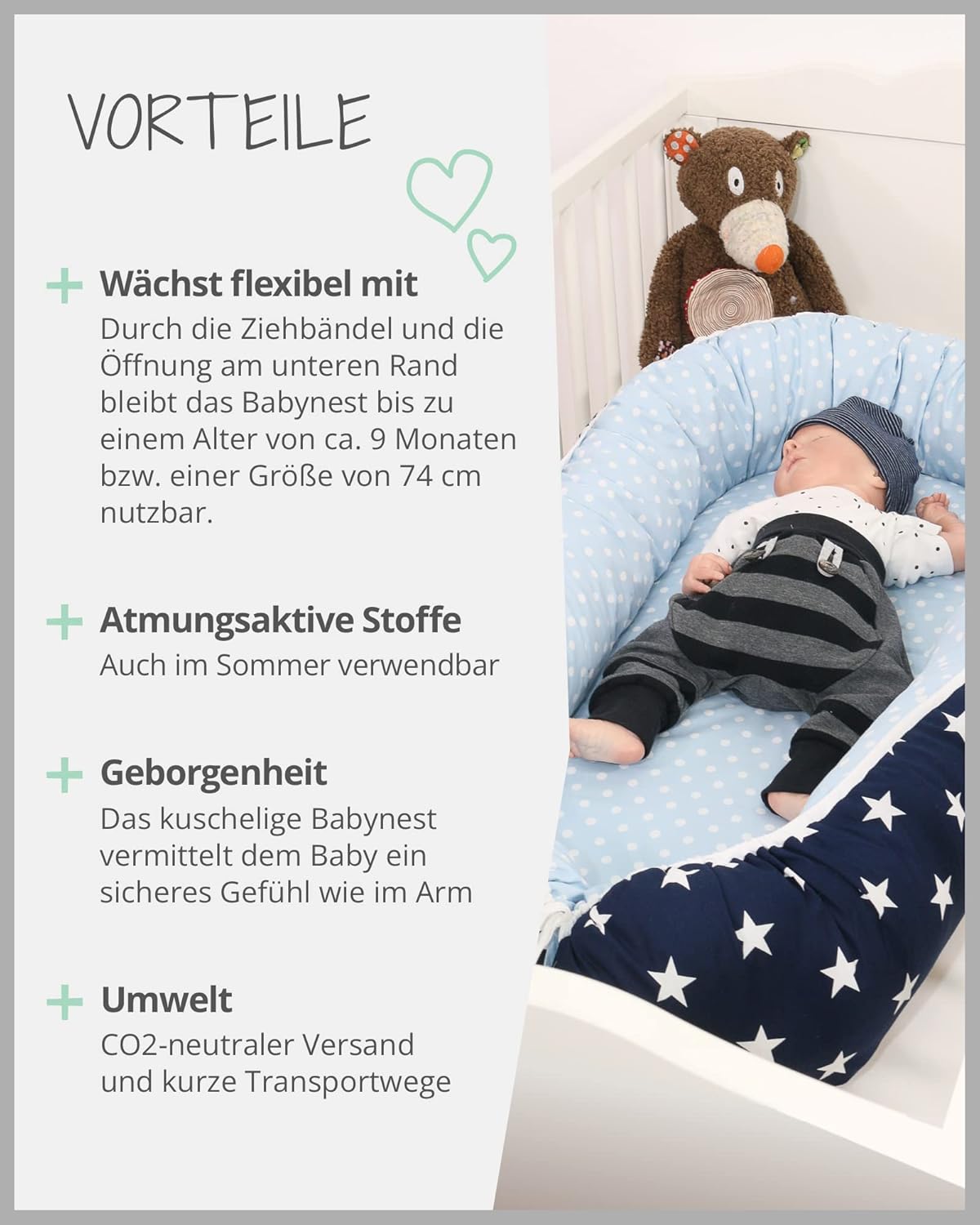 - BEQUEMER SCHLAFPLATZ: Dieses weiche & gemütliche Babynestchen eignet sich ideal als sicherer Schlafplatz im Elternbett, Kinderwagen oder als Reisebett für den Mittagsschlaf unterwegs.