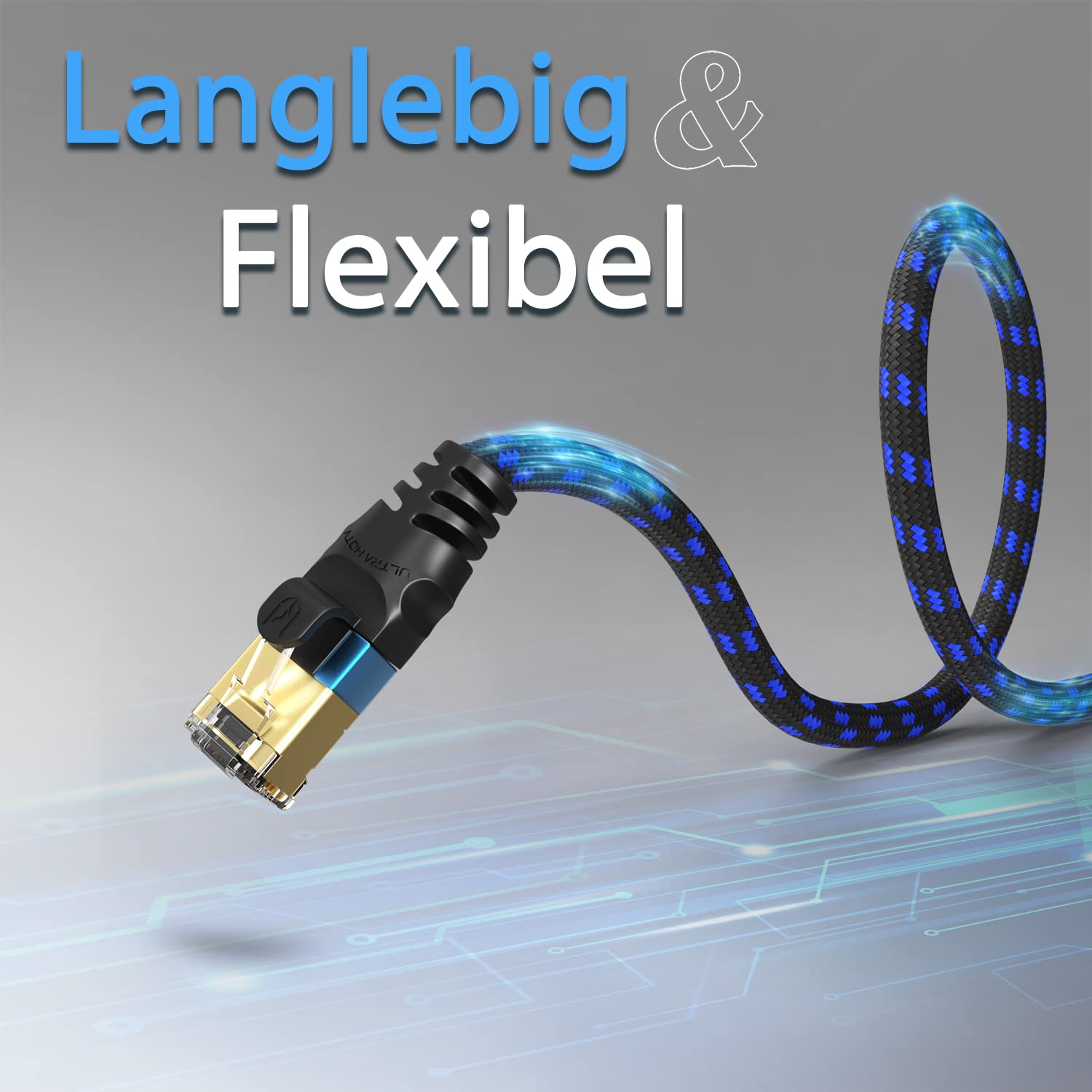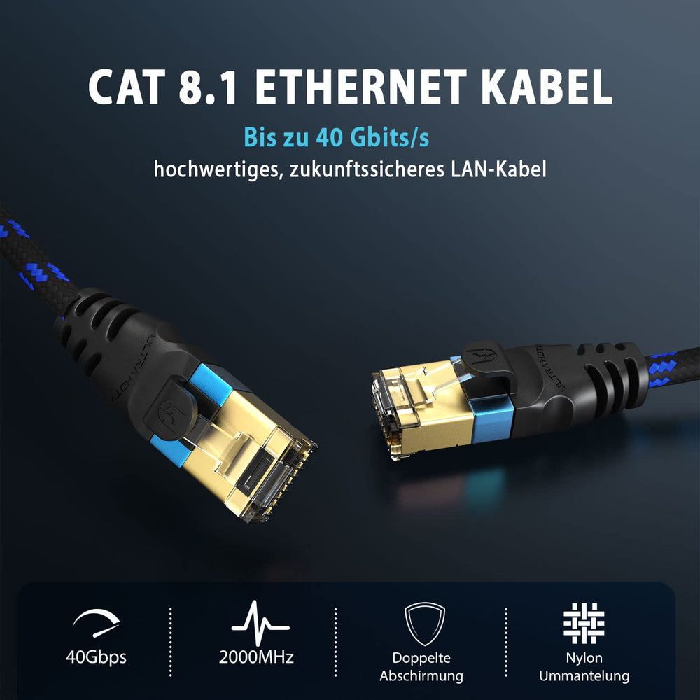 - ➡️ HIGH SPEED: Die Ultra HDTV CAT 8 LAN-Kabel unterstützen Glasfaser-Geschwindigkeiten von bis zu 40000 Mbits und 2000 MHz Bandbreite. Geniessen Sie blitzschnelle Ladezeiten, Spiele-Downloads und ruckelfreies Streaming Ihrer Lieblingsmusik.
