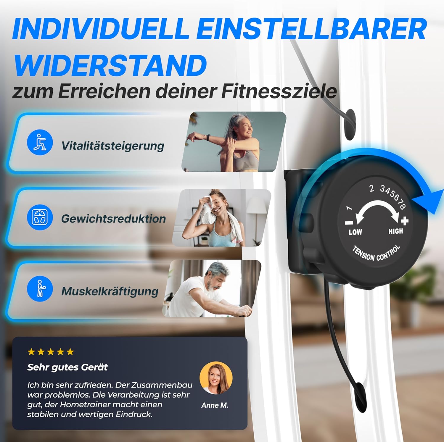 - ALLROUND-FITNESSGERÄT: Mit 8 Widerstandsstufen ist ein individuelles Ausdauertraining zur Stärkung des Herz-Kreislauf-Systems möglich - ideal für Anfänger und Fortgeschrittene