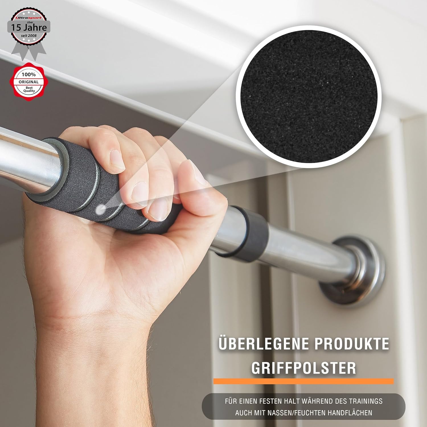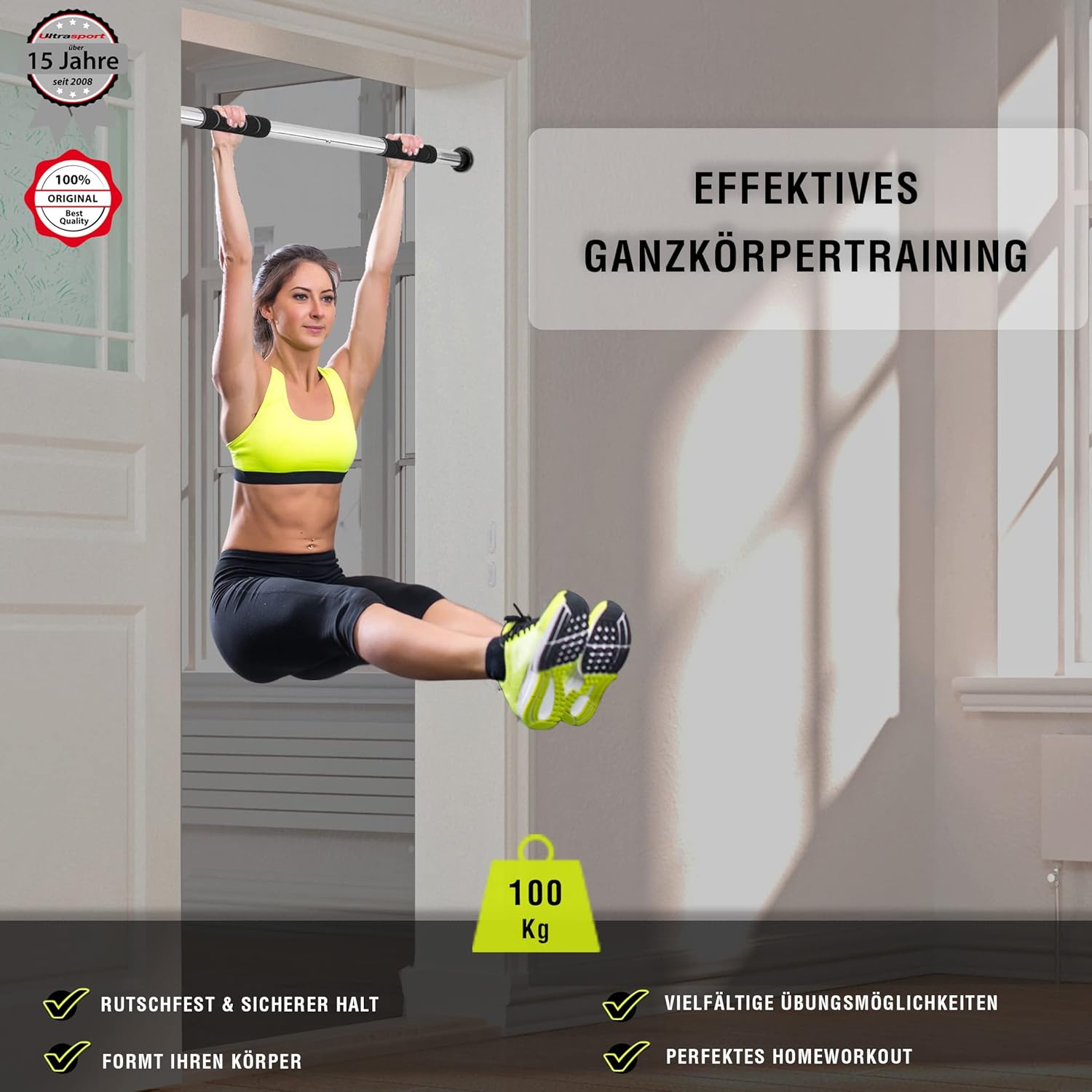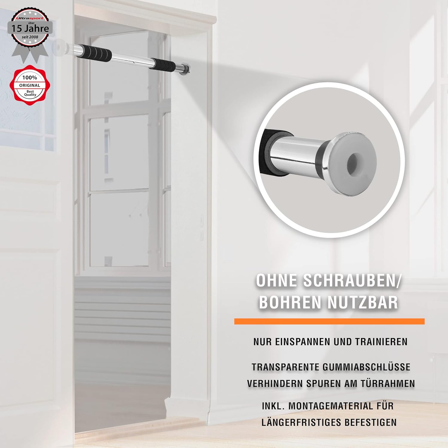 - In 2 Wege verbreiterbare Klimmzugstange für den Türrahmen – ohne Schrauben oder Bohren nutzbar: nur einspannen und trainieren, für längerfristiges Befestigen sind Schrauben und Montagematerial enthalten