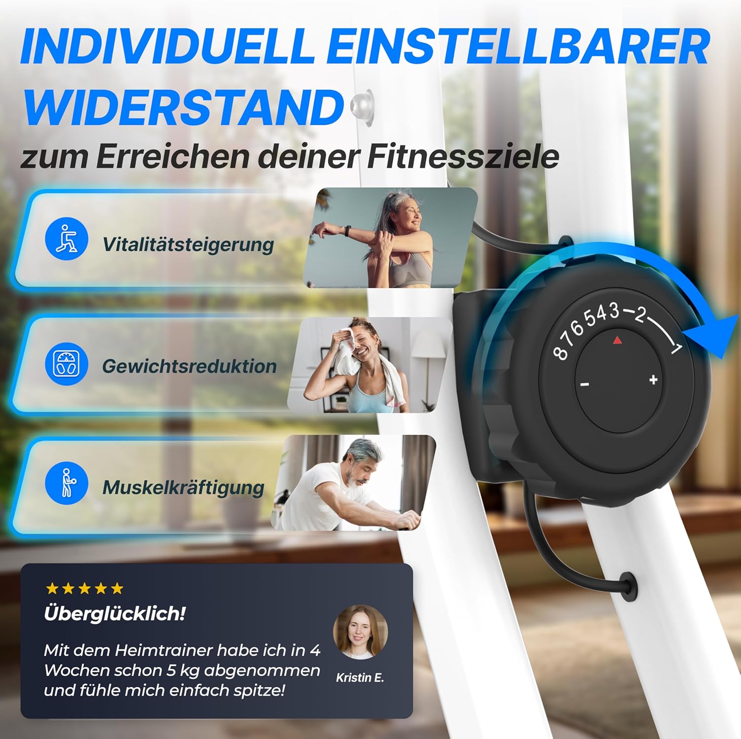 - EINFACH ZU TRAINIEREN : Indoorcycling mit dem Fitness- und Cardiogerät zur Stärkung des Herz-Kreislaufsystems – robuster Ausdauertrainer für effektiven Muskelaufbau mit Hilfe von 8 Widerstandsleveln