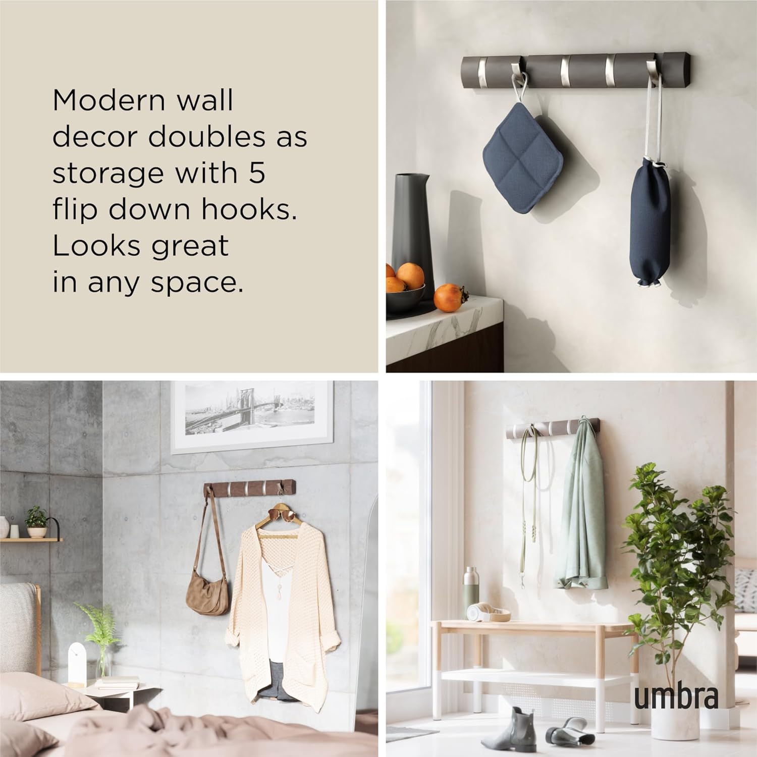 - MODERNE UND FUNKTIONALE FLURGARDEROBE: Flip von Umbra ist eine besondere Wandgarderobe mit 5 herunterklappbaren Haken, die Ihnen geräumigen Platz für Jacken und Accessoires im Flur, Schlafzimmer, Büro und Badezimmer bietet