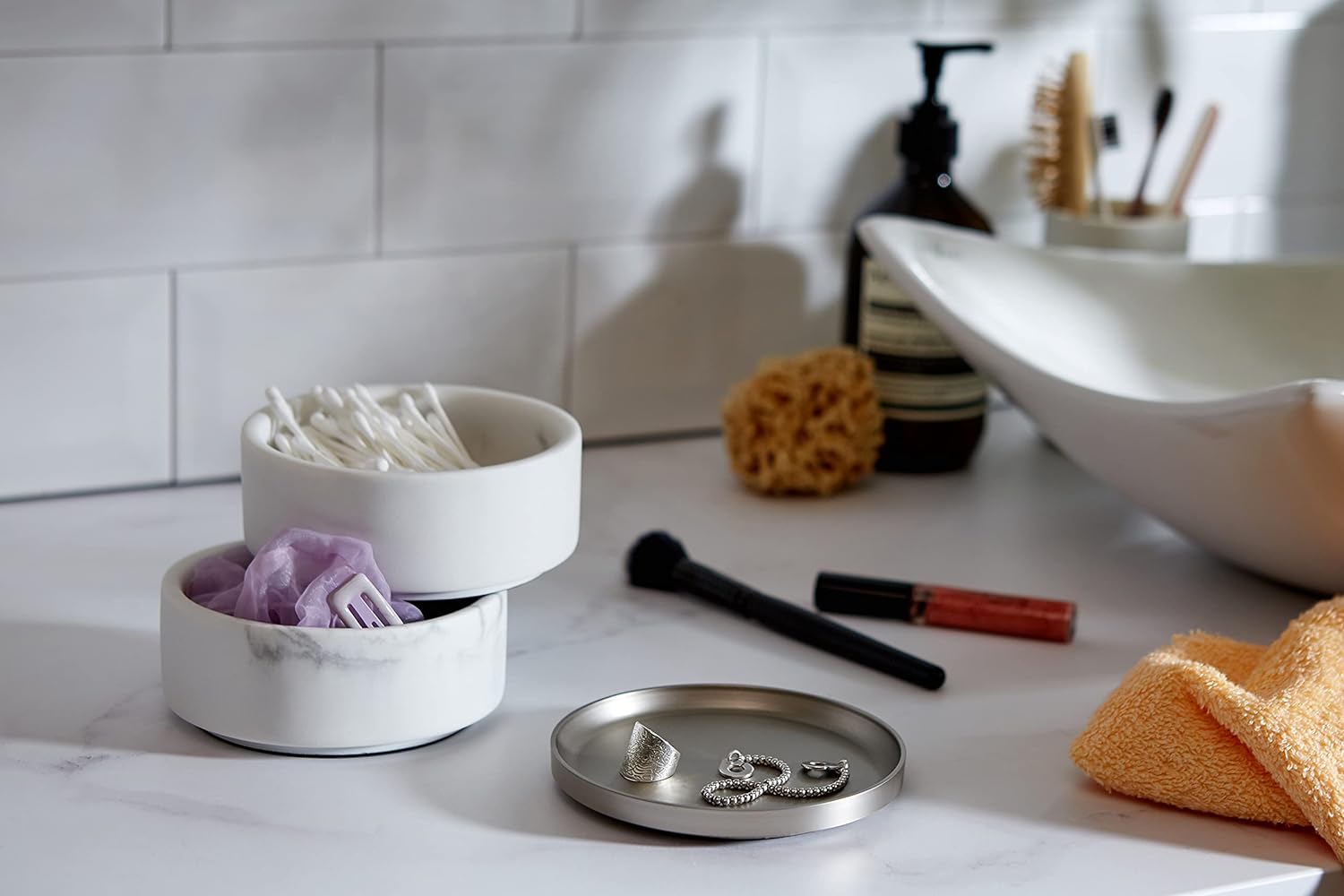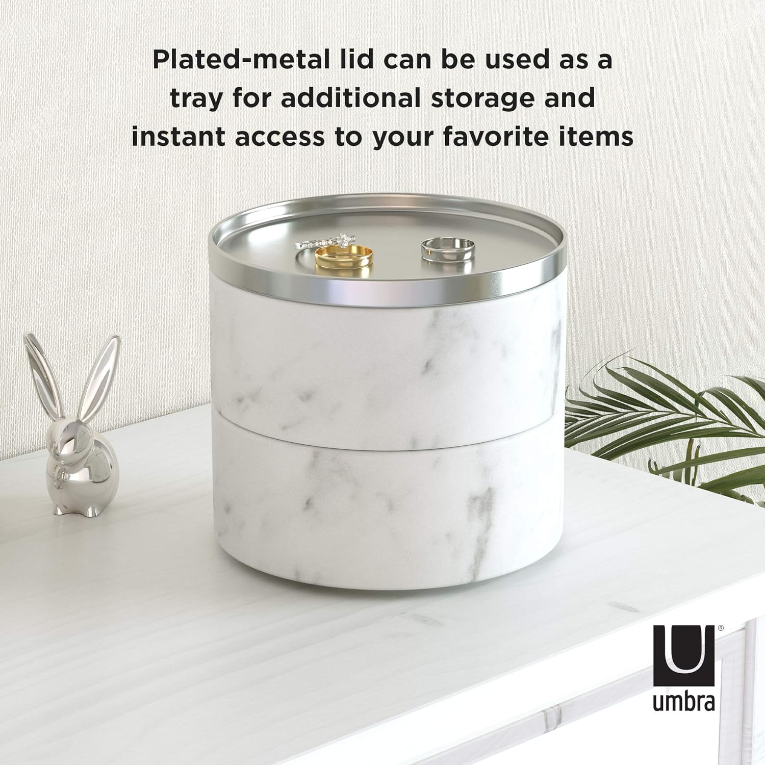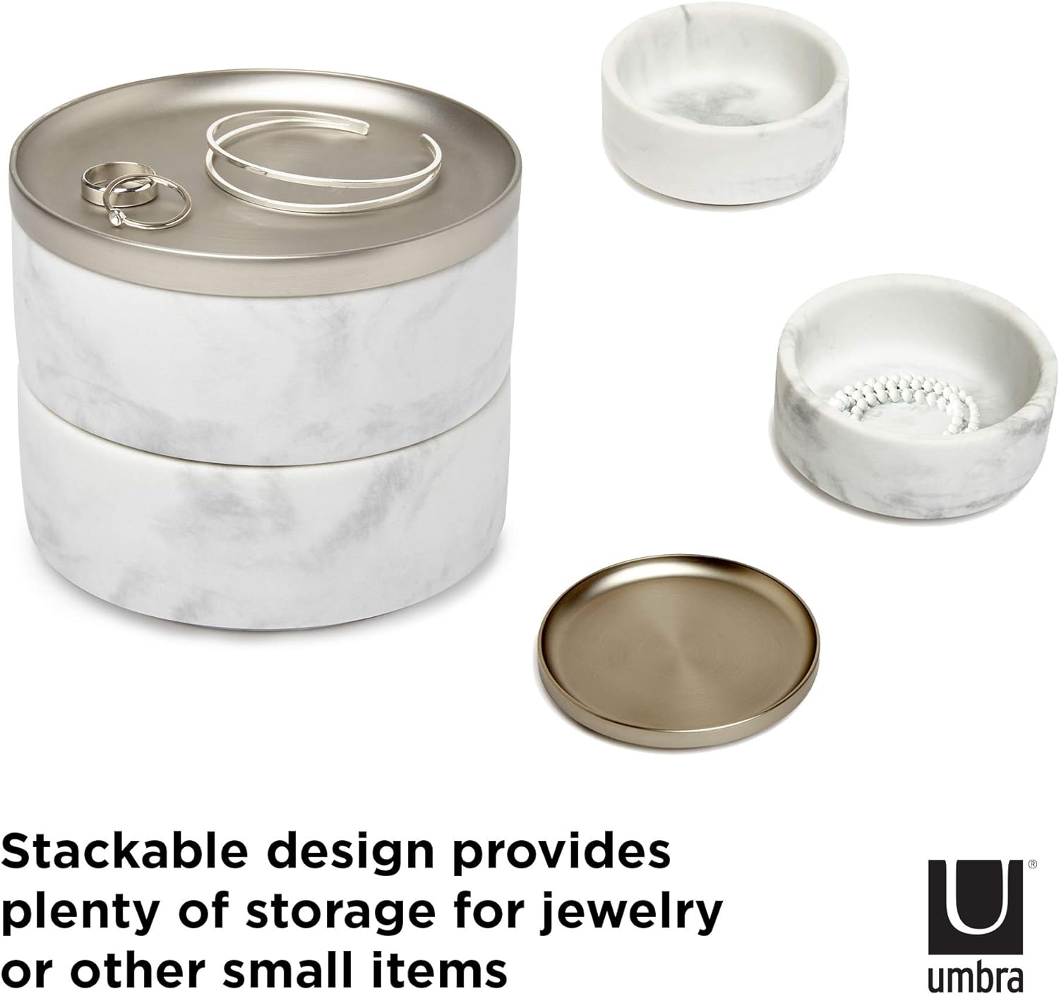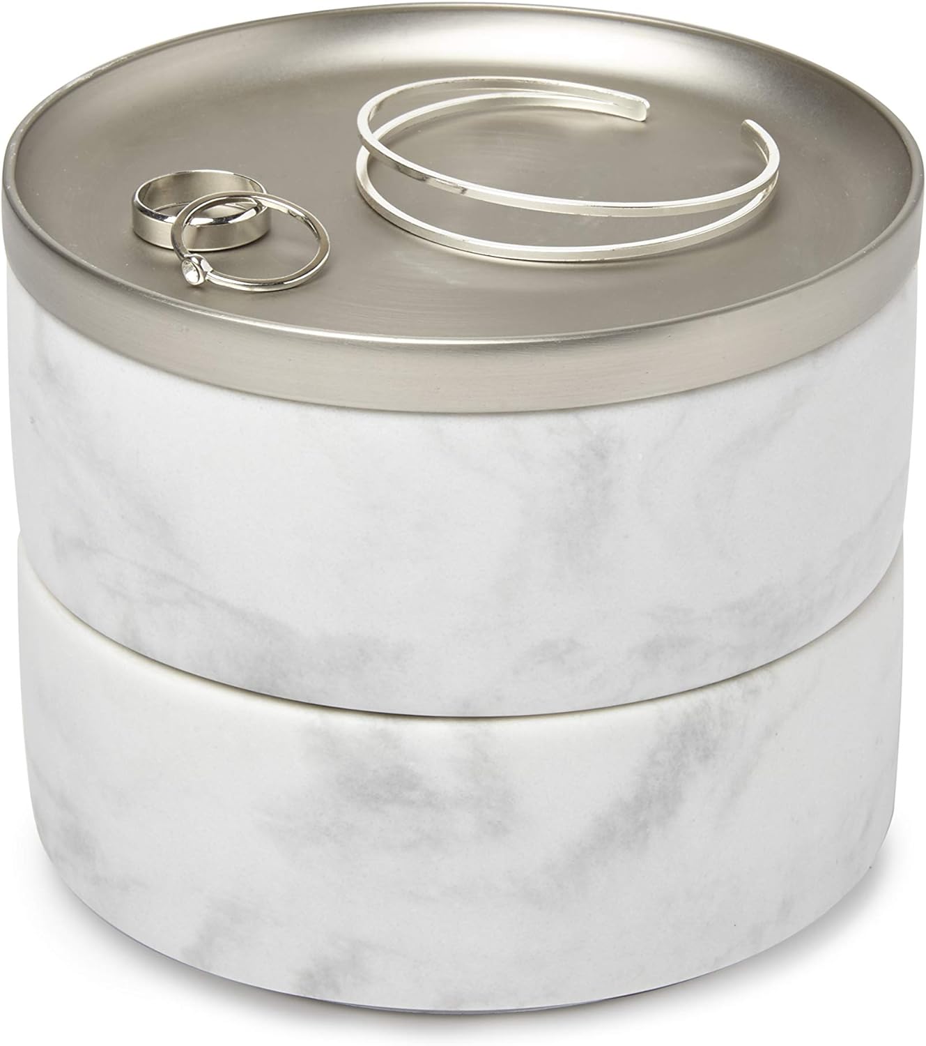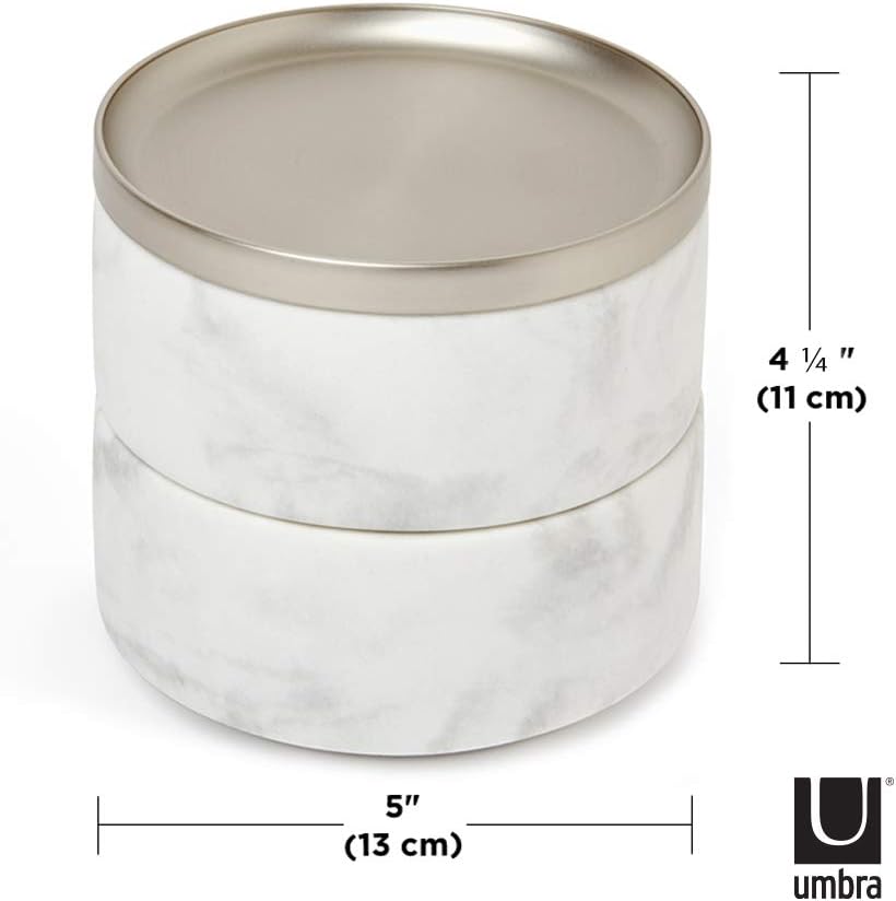 - MODERNES DESIGN: Tesora ist eine stapelbare Doppel-Schmuckbox mit vernickeltem Metalldeckel die auf besondere Art und Weise Funktionalität mit modernem, zeitgenössischen Design vereint