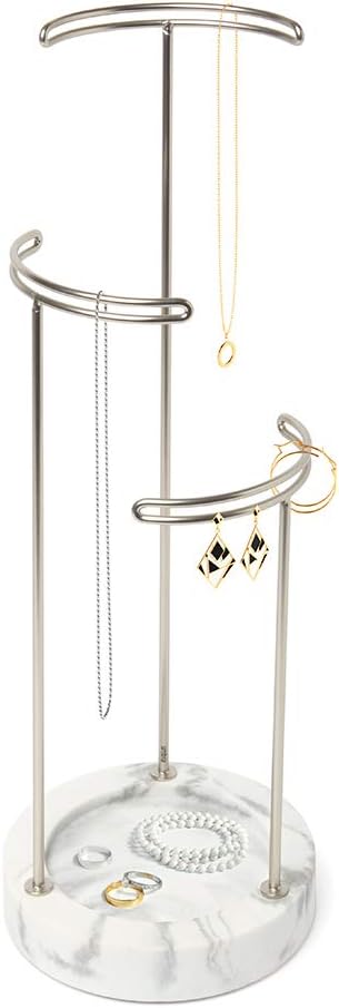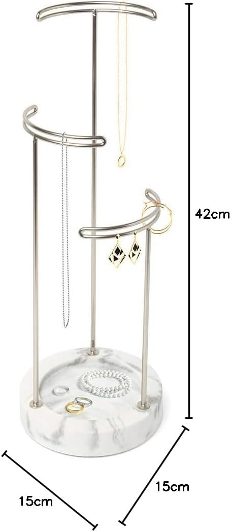 - MODERNES DESIGN: Seine aussergewöhnlichen Materialien lassen den Tesora Schmuck Ständer nicht nur schön aussehen, sich machen ihn auch zu einer sehr funktionalen Ketten Aufbewahrung; seine silberfarbenen Metallstangen und die weiss, marmorierte