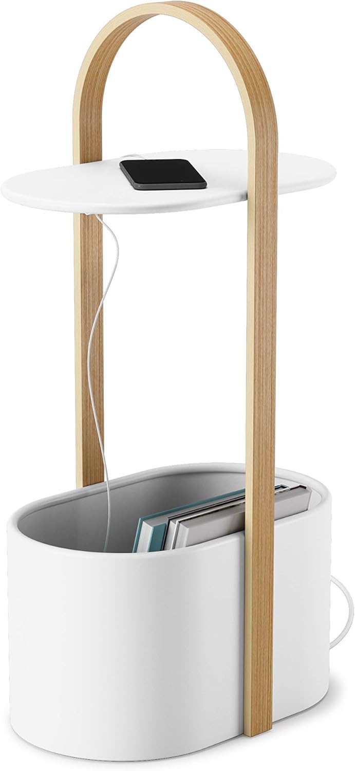 Variante: Weiss / Natur Beistelltisch mit Staufläche