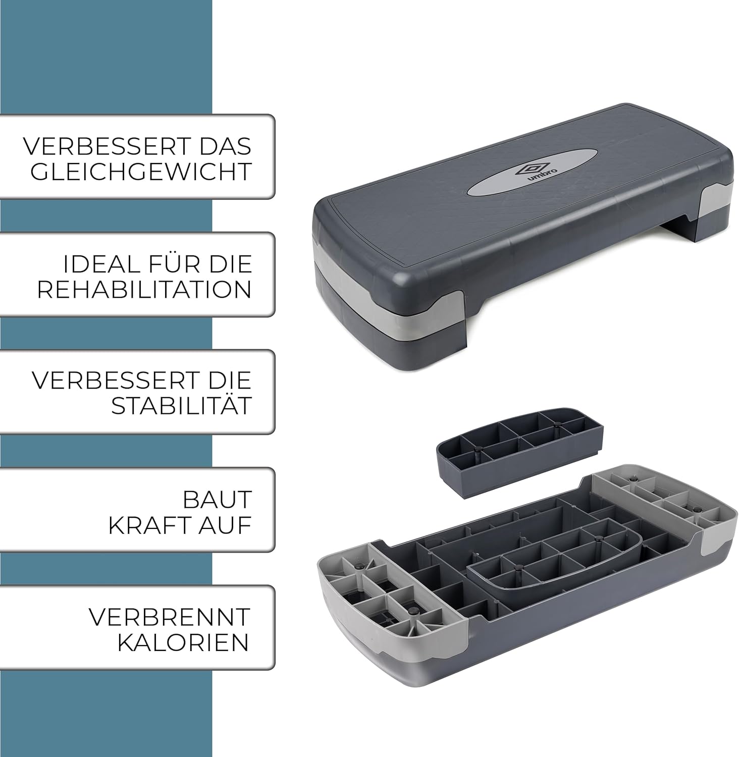 - ANTI-RUTSCH-SCHICHT - Dank einer Anti-Rutsch-Schicht auf der Oberfläche des Umbro Aerobic Steps können Sie Unfälle beim Training vermeiden.